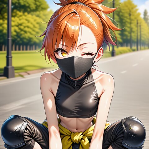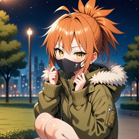 ai-generated, year 2024, anime style, 1girl, solo, full body, midday, outdoor, in park, from front, masterpiece, best quality, ultra detailed, perfect fingers, high resolution, absurdres, perfect anotomy, detailed background, unity 8k wallpaper, location, -2.5::wooden building::