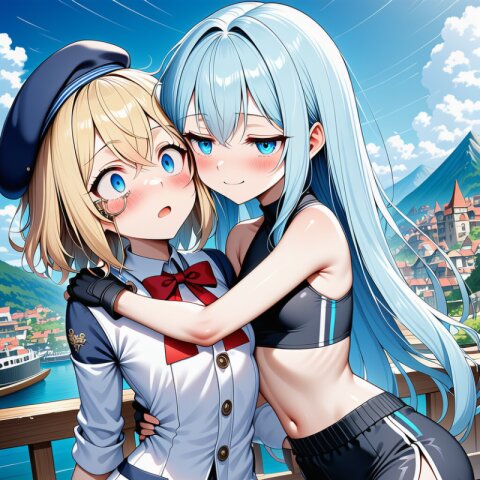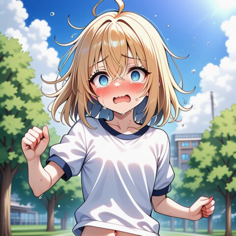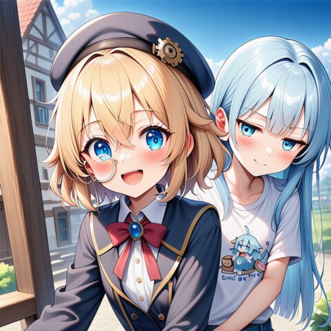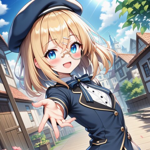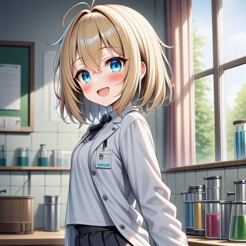 {ai-generate}:6, ai-assisted, anime coloring,year 2023,1girl,solo,character sheet,blonde hair,{medium hair},messy hair,blue eyes,droopy eyes,flat chest,skinny body,narrow waist,{small bottom}:8,{thin tighs}:2,thin legs,lab coat (overly long sleeves),{catholic school uniform},mini skirt,{white socks},leather shoes,smile,full body, masterpiece, best quality, ultra detailed, high resolution, absurdres, perfect anotomy, detailed background, unity 8k wallpaper