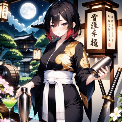 (worst quality, low quality:1.4), nsfw, revealing clothes, bad anatomy, bad hands, text, error, missing fingers, extra digit, fewer digits, cropped, normal quality, jpeg artifacts, signature, watermark, username, blurry, bad feet, duplicate, morbid, mutilated, poorly drawn face, mutation, deformed, ugly, disfigured, cloned face, extra face, extra limbs, too energetic expression, overly cheerful, big smile, unprofessional appearance, messy hair, casual clothes, school uniform, childish features, young features, short height, cute expressions, bright lighting, colorful background, amateur bartending pose, sloppy movements, incorrect drink mixing technique