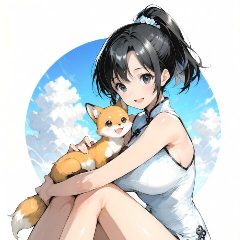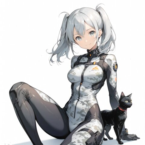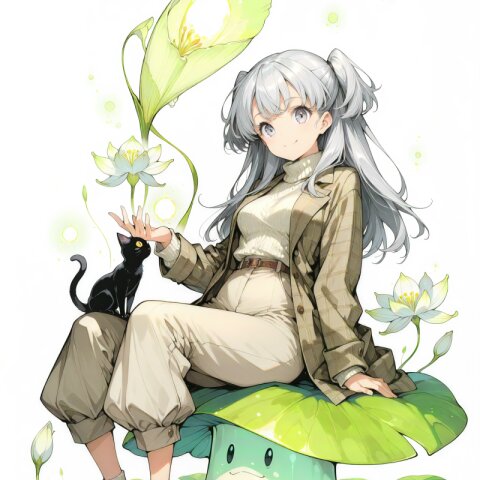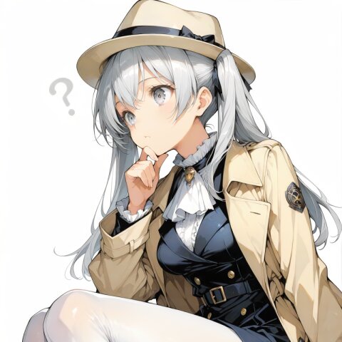 (young girl), Very intelligent and clever, always acts as if she is masterful, shining silver hair, two side up, long twintails, beautiful silver eyes, clear skin, (small body), medium breasts, pretty face, friendly personality, white tights up to her knees