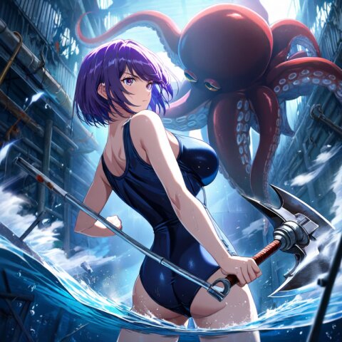 はじめまして。 特殊な水着を着て魔物と戦う「ライフセイバー」の一員、初霜えりかです。