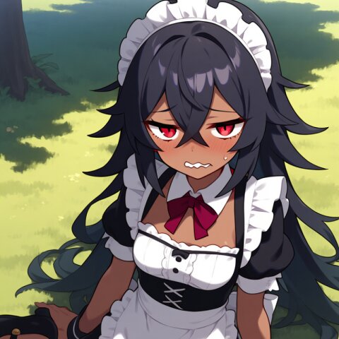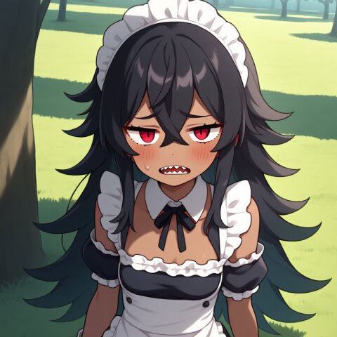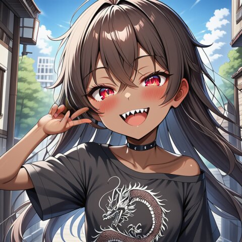 {ai-generate}:6, ai-assisted, anime coloring,year 2023,1girl,solo,character sheet,{dark skin}black hair,{messy hair},long hair,red eyes,slanted eyes,sharp teeth,small breasts,skinny body,narrow waist,{small bottom}:8,{thin tighs}:2,thin legs,{karate gi},karate pants,bare foot,full body, masterpiece, best quality, ultra detailed, high resolution, absurdres, perfect anotomy, detailed background, unity 8k wallpaper