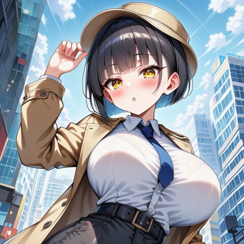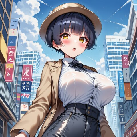 ai-generated, year 2024, anime style, 1girl, solo, sexy posing, in downtown, dynamic angle, masterpiece, best quality, ultra detailed, perfect fingers, high resolution, absurdres, perfect anotomy, detailed background, unity 8k wallpaper, location