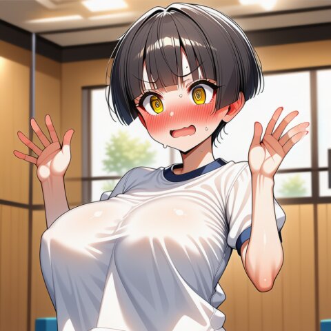 lowres, aliasing, 2.5::chubby body, voluptuous body, big hip, voluptuous legs::, bag under eyes, two side up