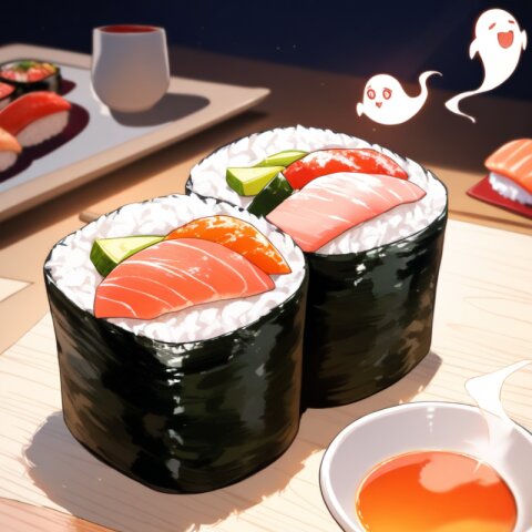 お化けちゃん(https://iromirai.jp/characters/ghost_girl)のおともだちだったり眷属だったりお供だったりと謎の存在