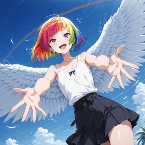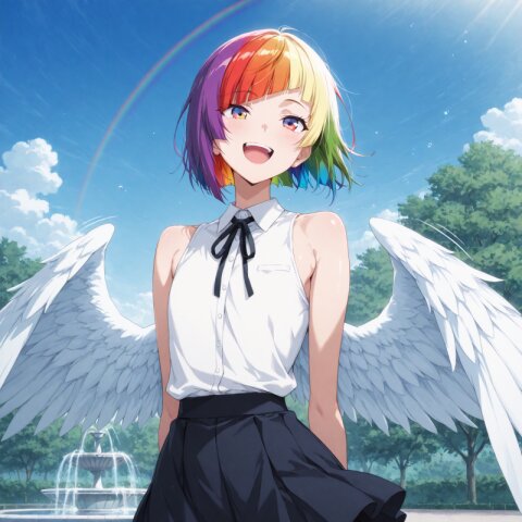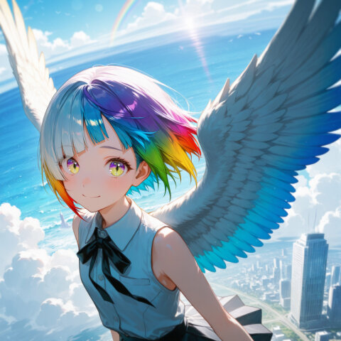 幸せ、喜びをつかさどる虹の天使・・・なのだが自分の役割に嫌気が差し権能を捨て地上に降りてきた