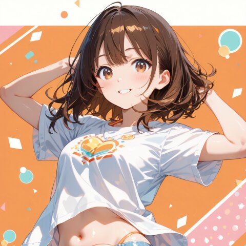 # イロミライ動画生成機能 FiaMix Illustriou版です 1girl, masterpiece,high resolution, best quality, detailed eyes, detailed eyelashes. natural makeup. medium hair, olive-brown hair, dark-brown eyes, upturned eyes. #このあたりに服のプロンプト入れてください。 small breast, shiny hair, clear skin. kawaii.