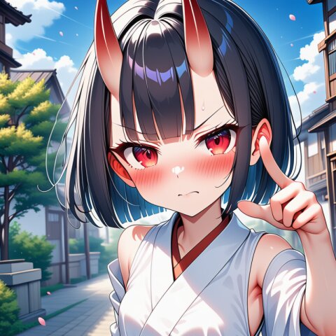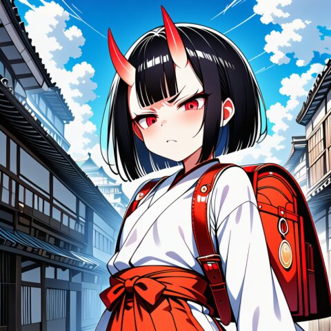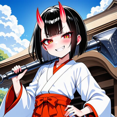 {ai-generated}, ai-assisted, {{{Japanese anime coloring}}}, {{year 2023}}, detailed fingers,1girl,solo,character sheet,{oni horns on forehead},black hair,{bob cut},short hair,bangs,red eyes,scowl at,flat chest,skinny body,narrow waist,{small bottom}:8,{thin tighs}:2,thin legs,{miko uniform},mini skirt,tabi,full body, masterpiece, best quality, ultra detailed, detailed fingers, high resolution, absurdres, perfect anotomy, detailed background, unity 8k wallpaper