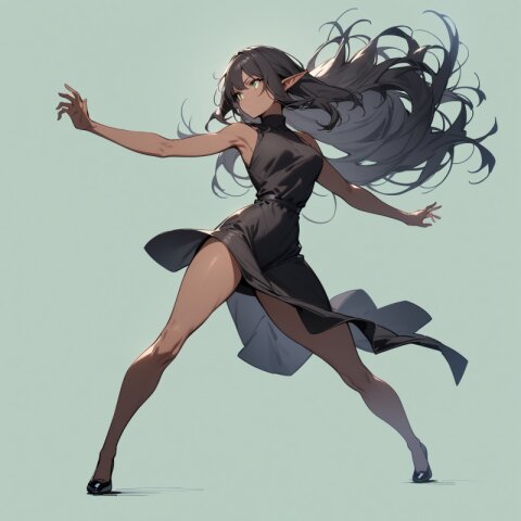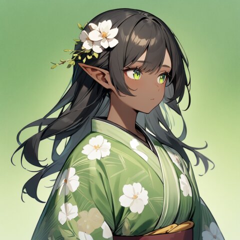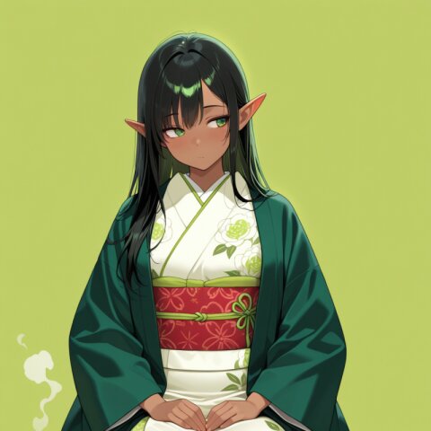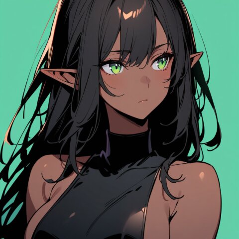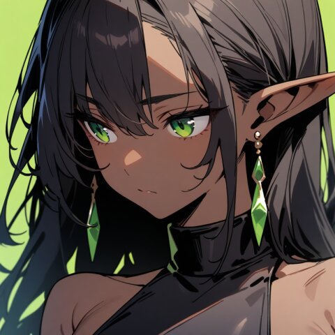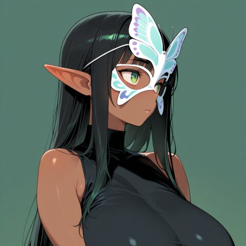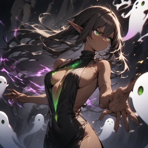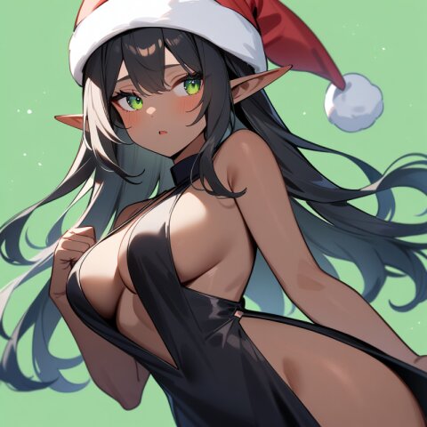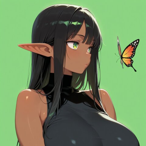 黒髪ロングダークエルフお姉さん(big tits:1.2)