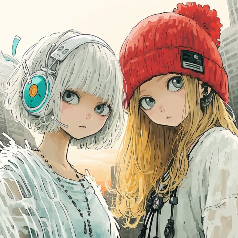 大きなヘッドホンで、どこかにある