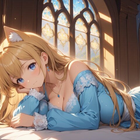1girl, solo, pov, face_focus, 16-year-old, kawaii, cute_face, tareme, inocent_smile, no_makeup, beautiful_anime_girl, blonde_hair, long_hair, straight_hair, blue_eyes, beautiful_eyes, BREAK large_breasts, beautiful_breasts, bare_legs, BREAK elegant_dress, white_dress, puff_long_sleeves, tricate_gold_embroidery, miniskirt, flared_skirt, BREAK palace, arched_window, BREAK masterpiece, best_quality, ultra_detailed, extremely_detailed_CG, 4K, 8K, super_detailed_skin, detailed_beautiful_eyes, detailed_beautiful_face,