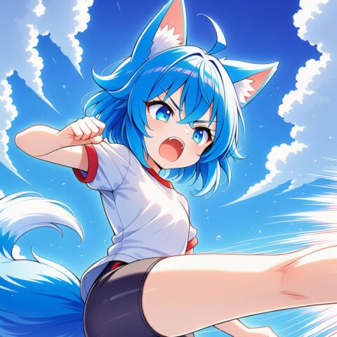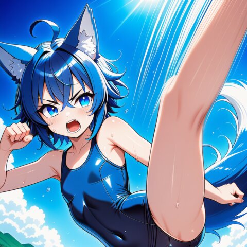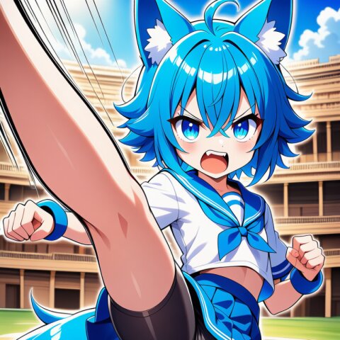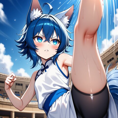 {ai-generated}, ai-assisted, {{{Japanese anime coloring}}}, {{year 2023}}, detailed fingers,1girl,solo,outdoor,{in sunny Medieval port town},wolf ears,blue hair,messy,short hair,bangs,slanted eyes,blue eyes,flat chest,skinny body,wolf tail,{small bottom}:8,{thin tighs}:6,thin legs,{damaged dress},accessorys,sad face,standing on ground, masterpiece, best quality, ultra detailed, detailed fingers, high resolution, absurdres, perfect anotomy, detailed background, unity 8k wallpaper