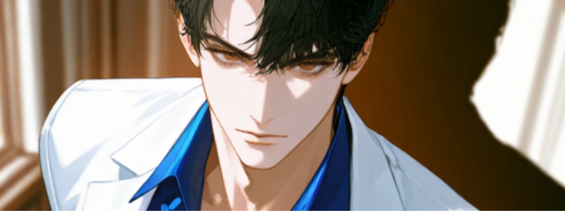 A beautiful man in his late 30s with short black hair with his bangs divided sideways with ruthless, clear brown eyes, quiet, melancholy glow, long lashes, sophisticated features, elegant jawline, Smooth, bright skin, perfectly balanced proportion, clean and sharp line art
