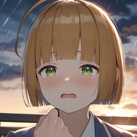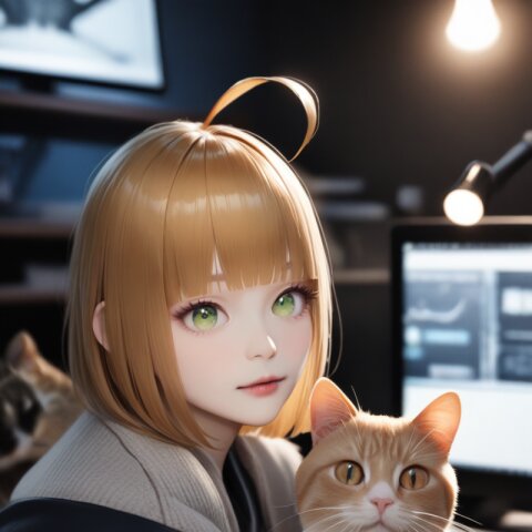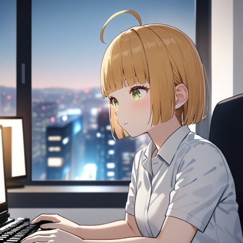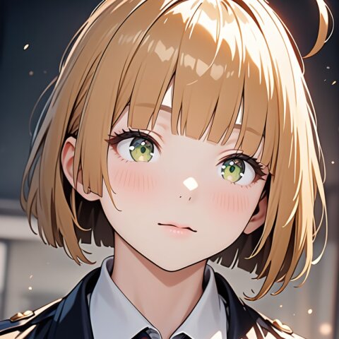 ahoge,blonde hair,blunt bangs,straight hair,short hair,hime cut,delicate face,detailed face,detailed skin,masterpiece,best quality,insanely detailed,beautiful,16k