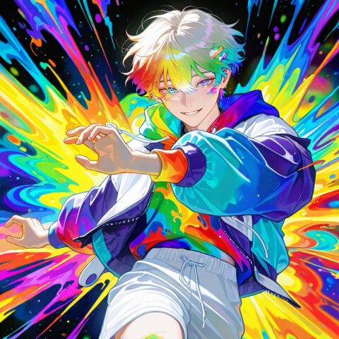 lowres, blurry, bad anatomy, extra limbs, missing fingers, fused fingers, deformed hands, low quality, worst quality, jpeg artifacts, monochrome, dark lighting, dull colors, plain outfit, realistic style, nsfw, muscular body, mature body, gothic style, minimalist fashion, skirt, mini skirt, pleated skirt, short skirt, layered skirt, frilly skirt, wings, tail, animal ears, feminine body, large chest, unnatural pose