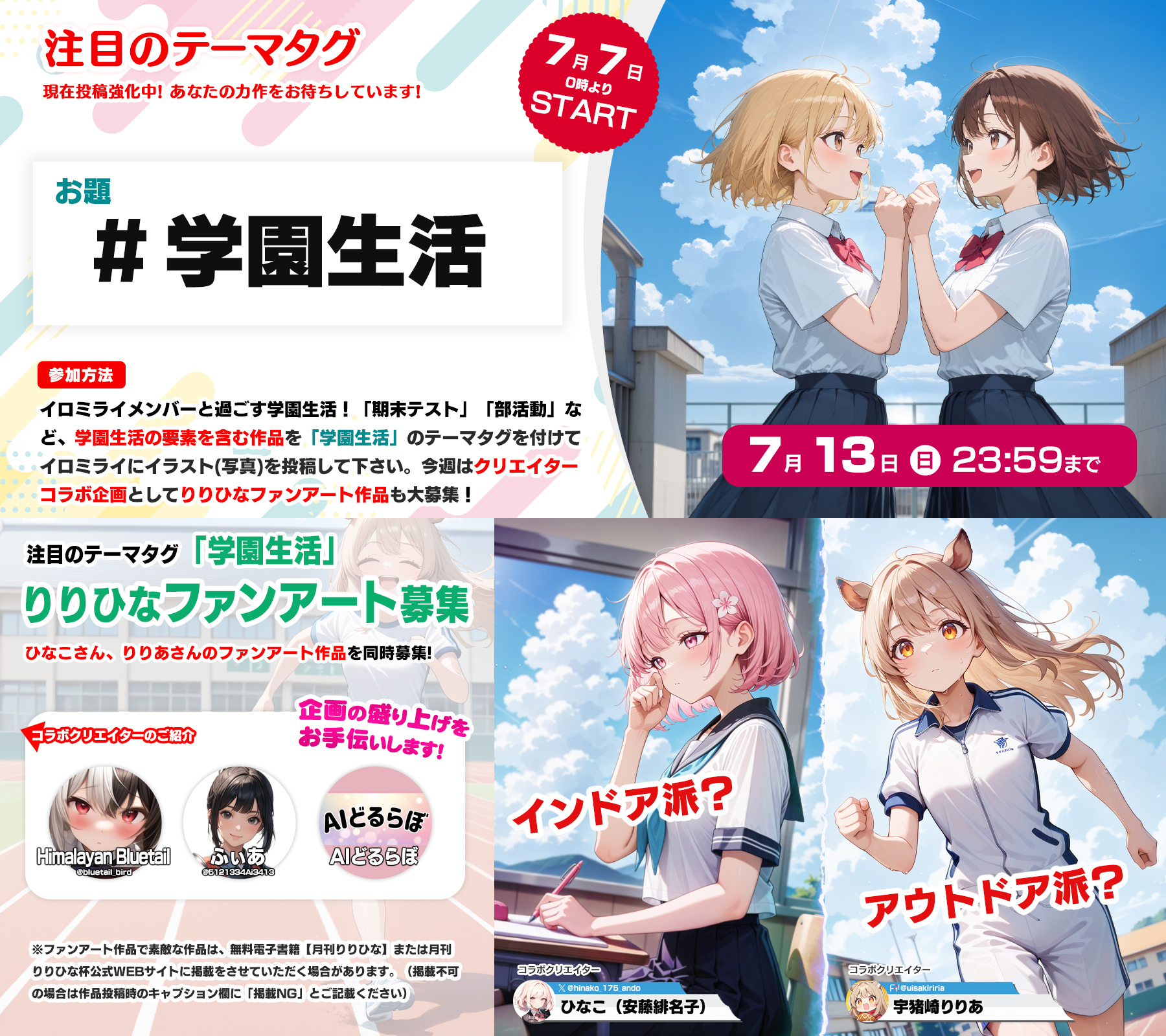 【予告】注目のテーマタグ「#学園生活」では、クリエイターコラボのファンアート作品を同時募集いたします!7月7日(月)~7月13日(日)(2025年7月5日)