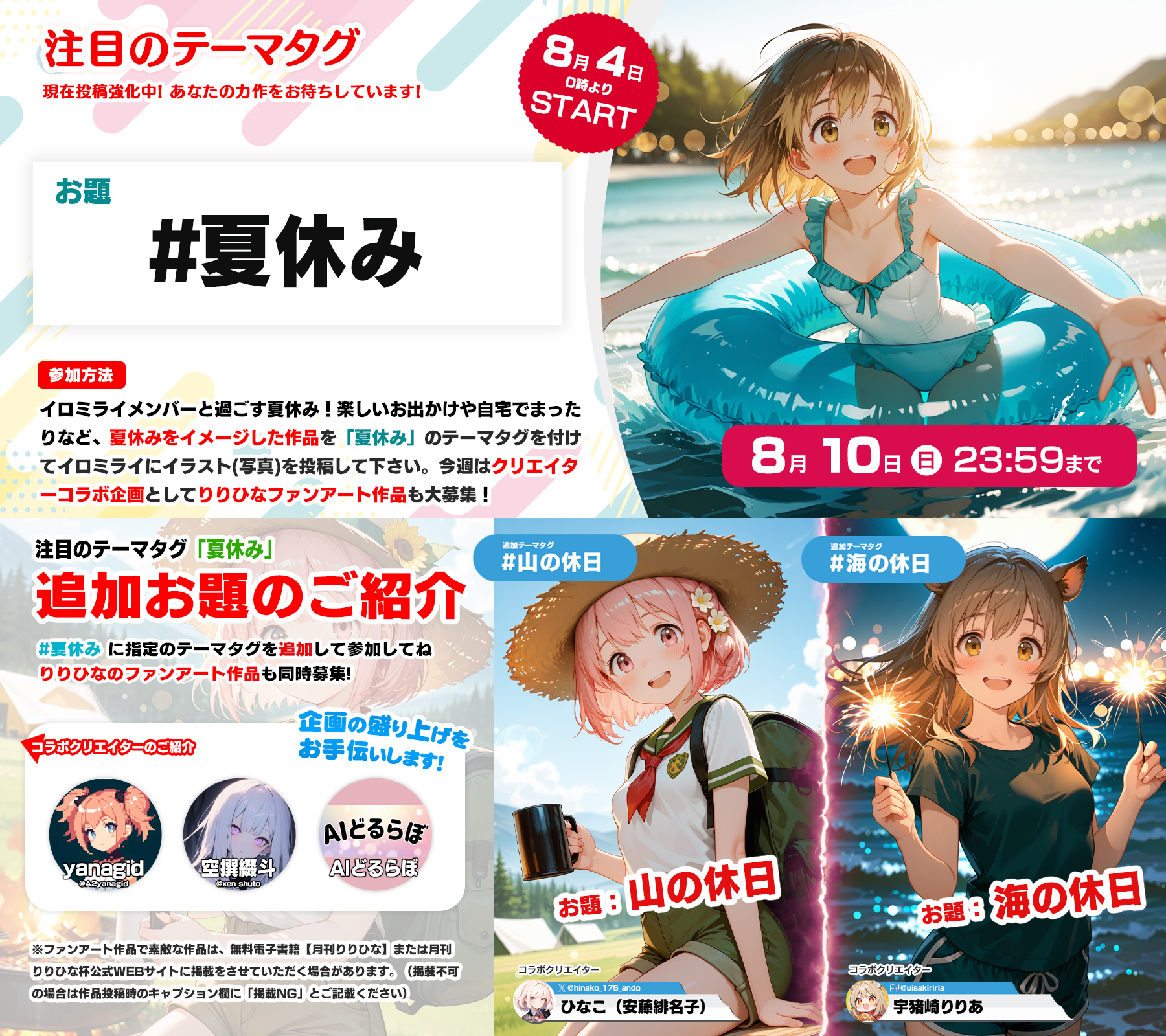 【予告】注目のテーマタグ「#夏休み」では、クリエイターコラボのファンアート作品を同時募集いたします!8月4日(月)~8月10日(日)(2025年8月2日)