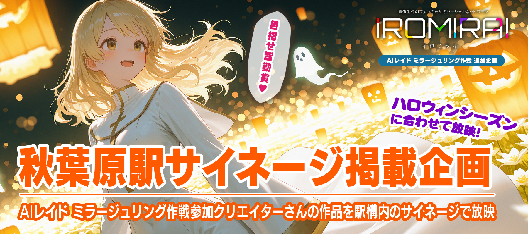 JR秋葉原駅構内のデジタルサイネージにて「AIレイド ミラージュリング作戦(イロミライへの投稿分)」にご参加して頂いたクリエイター様約30名分の作品を放映させて頂きます!ぜひご参加ください!(*´ω`*)