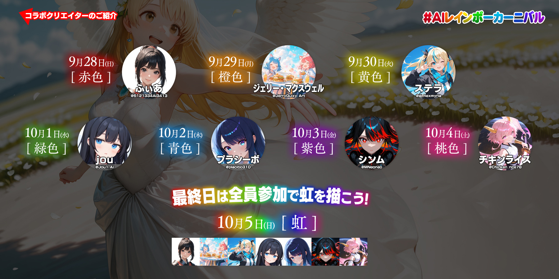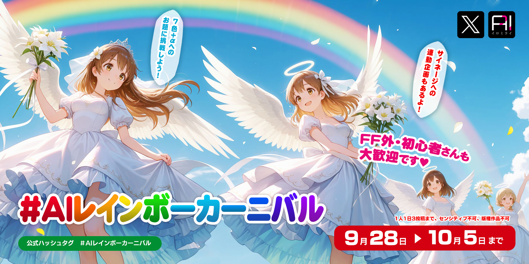 【予告】クリエイター様とのコラボ投稿企画「AIレインボーカーニバル」を開催します!9月28日(日)~10月5日(日)(2025年9月26日)