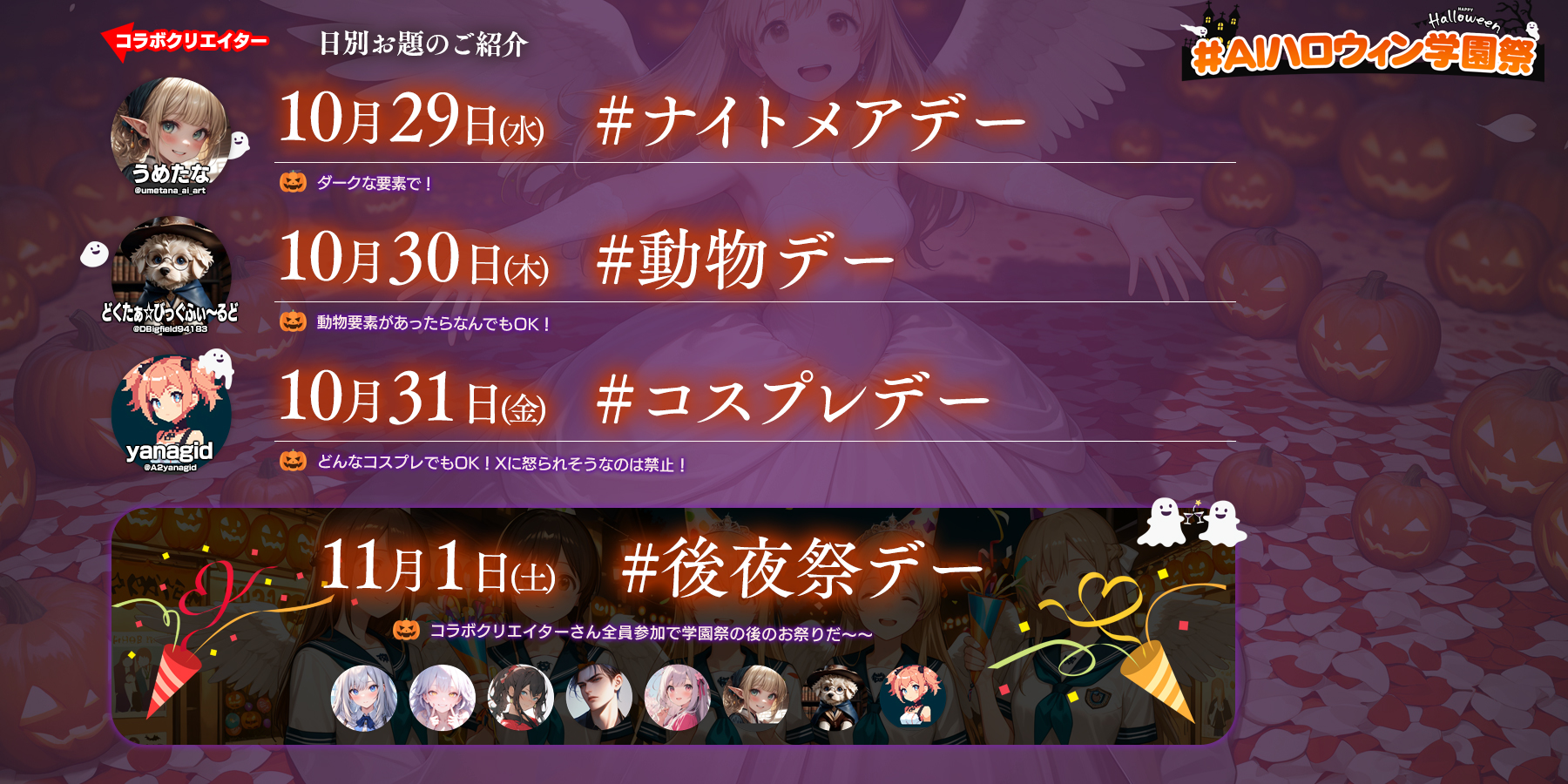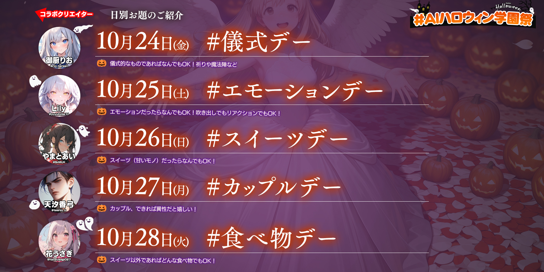 クリエイター様とのコラボ投稿企画「AIハロウィン学園祭」を開催します!10月24日(金)~11月1日(土)(2025年10月21日)