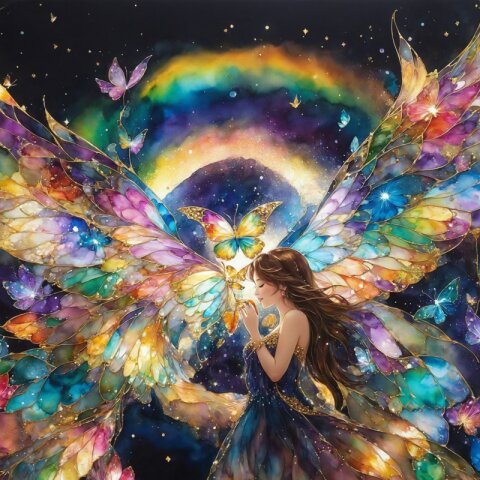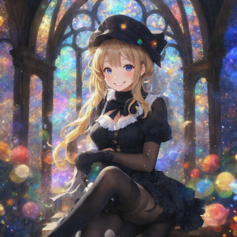 masterpiece, best quality, (animation style:1.6), anime colored, (style of stained glass:2.0),kaleidoscope,(magic particles:1.6),The magnificent stained glass in the cathedral, intricately inlaid and shining,amazing,beautiful