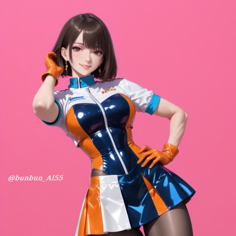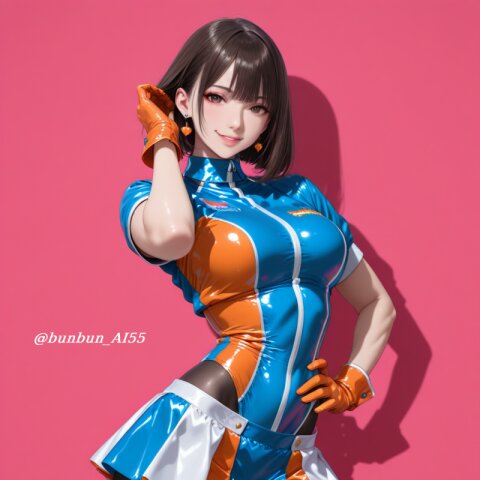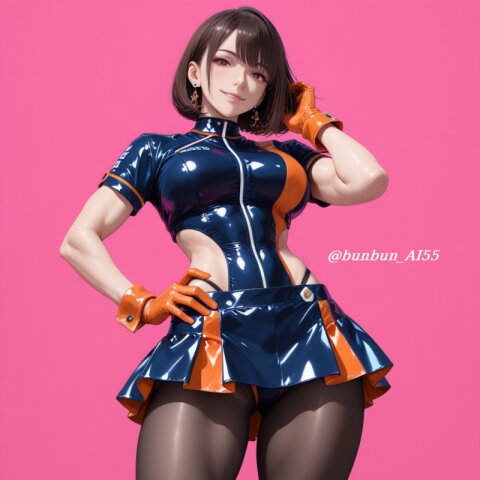 score_9, score_8_up, score_7_up, score_6_up, score_9, score_8_up, score_7_up, score_6_up, realistic eye, 8k uhd, highres, extremely detailed, source_anime, zPDXL3, (photo of a beautiful ([japanese : korean:0.8]) model 25 years old tall woman), perfect lighting, forward lighting, detailed face, beautiful woman's face, perfect eyes, perfect hands, perfect fingers, BREAK ([japanese : korean:0.8]), (huge breasts, breasts apart, pointy breasts), (Wear a bodysuit), ((blue latex bodysuit with blue lines:1.2), spandex, catsuit), (unzipped to the navel:1.5), ((cleavage, cleavage cutout)), (blue latex gloves), (light reflections), (shiny, glossy, luster, latex), nsfw, BREAK (short bob cut, blonde hair), (kawaii), cute face, small face, make up, (seductive smile), ((tongue, tongue out)), (muscular:1.1), (shiny skin), (jewelry, piercing, earrings), (red lips), (standing, legs apart), (hand on own hair), BREAK (looking at viewer, medium shot), (from side), (gray simple background),