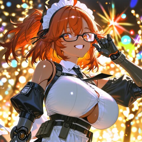 PORTRAIT, HIGH QUALITY, HIGHLY DETAILED BACKGROUND, Dynamic pose, dynamic angle The whole body BREAK 1 girl, 15 years old, solo, bob cut, Blonde hair, light blue inner color, blue eyes, (round glasses: 1.4) big smile, open mouth, smile, Santa costume, Santa dress, long sleeves, Santa hat, thighhighs, holding white Santa bag, cinematic lighting, lens flare, chromatic aberration, depth of field BREAK wood lodge, Christmas celebration all over the wall, 1 Christmas tree in the corner of the room, Star Treats at the Top of the Christmas Tree, 1 large table in the center of the foreground, 1 Christmas cake on the table, Are Christmas gifts placed next to the table,