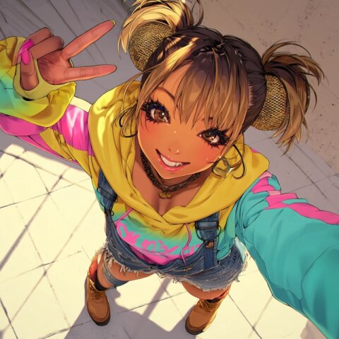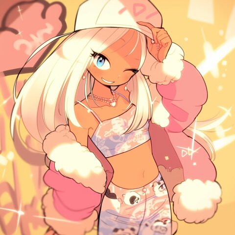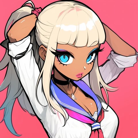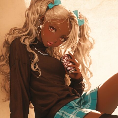 best-quality.dynamic-angle.ganguro.ko-gyaru.dark-brown skin.false-eyelash.huge-lip.stylish-hair.school-uniform.pleated-skirt.loose-sox.winter-coat.muffler.. poster-color painting drawn on upperclass