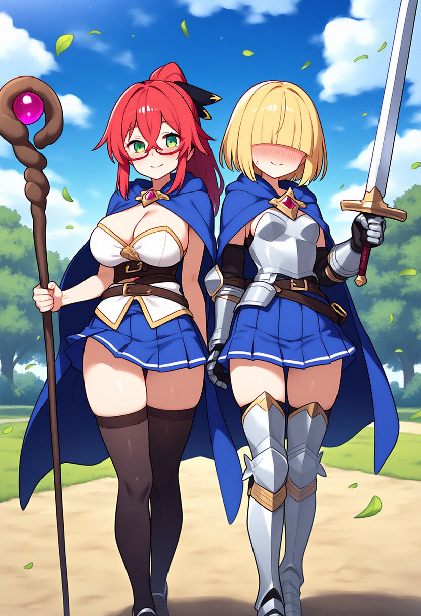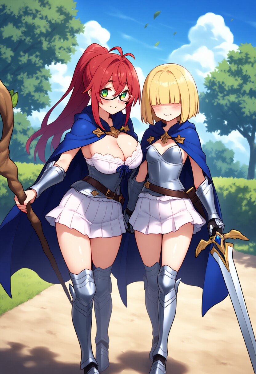 前置きは長くなりましたが緋山霧華ちゃんと富士ヶ嶺紅庵ちゃんの姫騎士コスプレです。もうちょっと衣装の色を固定して良かったですね。折角プロンプトの幅も広がったし。
