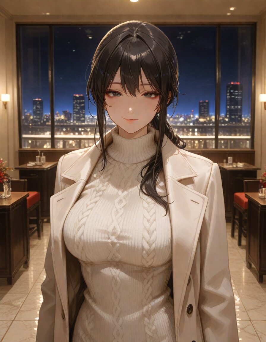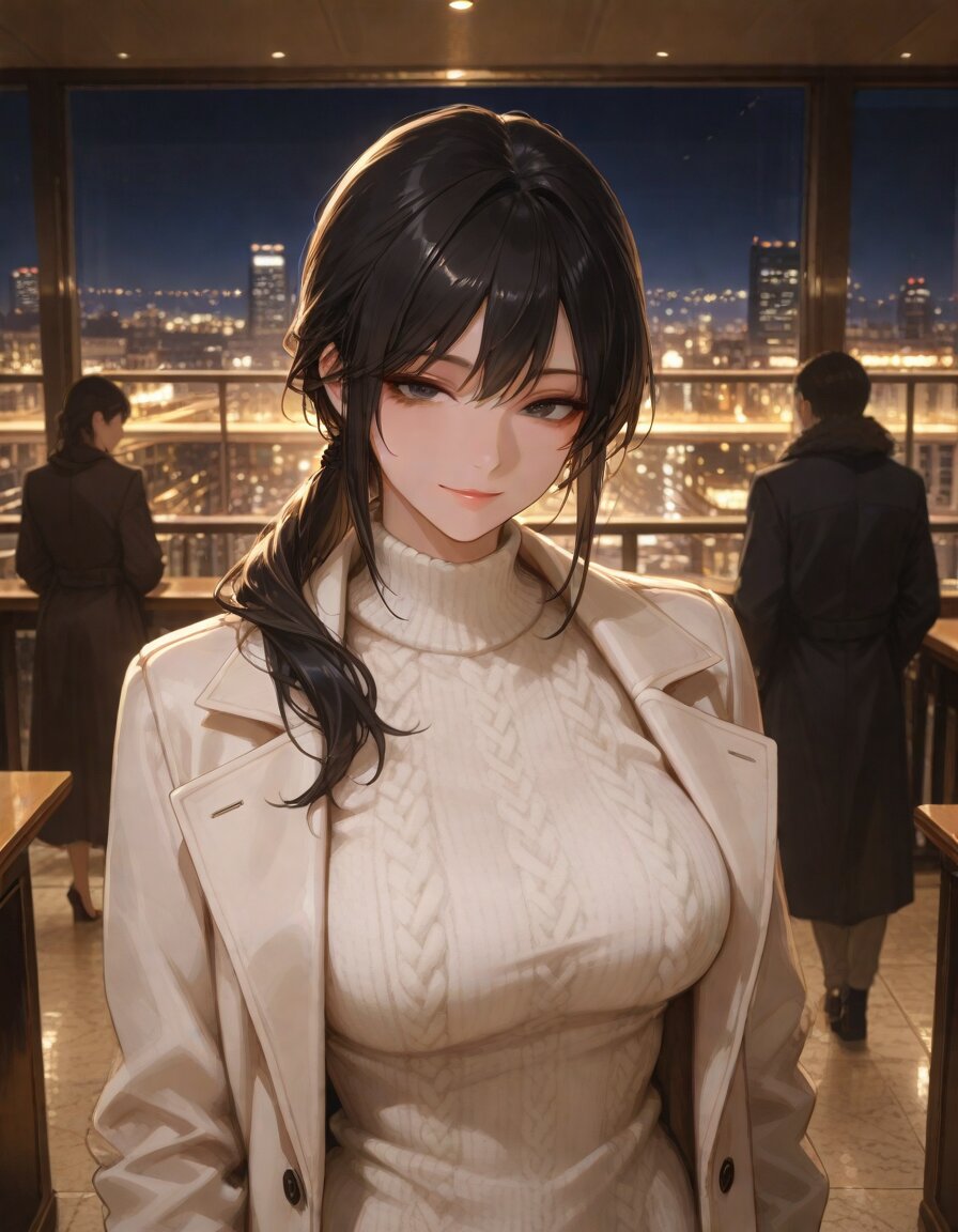 <lora:hyper_sdxl_8_step_lora_f16:1>,, 1Girl, walking, hotel, lobby, indoor, city, (focus face, upper body), night, BREAK beautiful lady, Marriedツwoman, 30 years old, long hair, (black hair), ponytail, large breasts, seductive smile, sexy knit dress, coat, BREAK masterpiece, amazing quality, best quality, ultra-detailed, 8K, newest, Japanese,