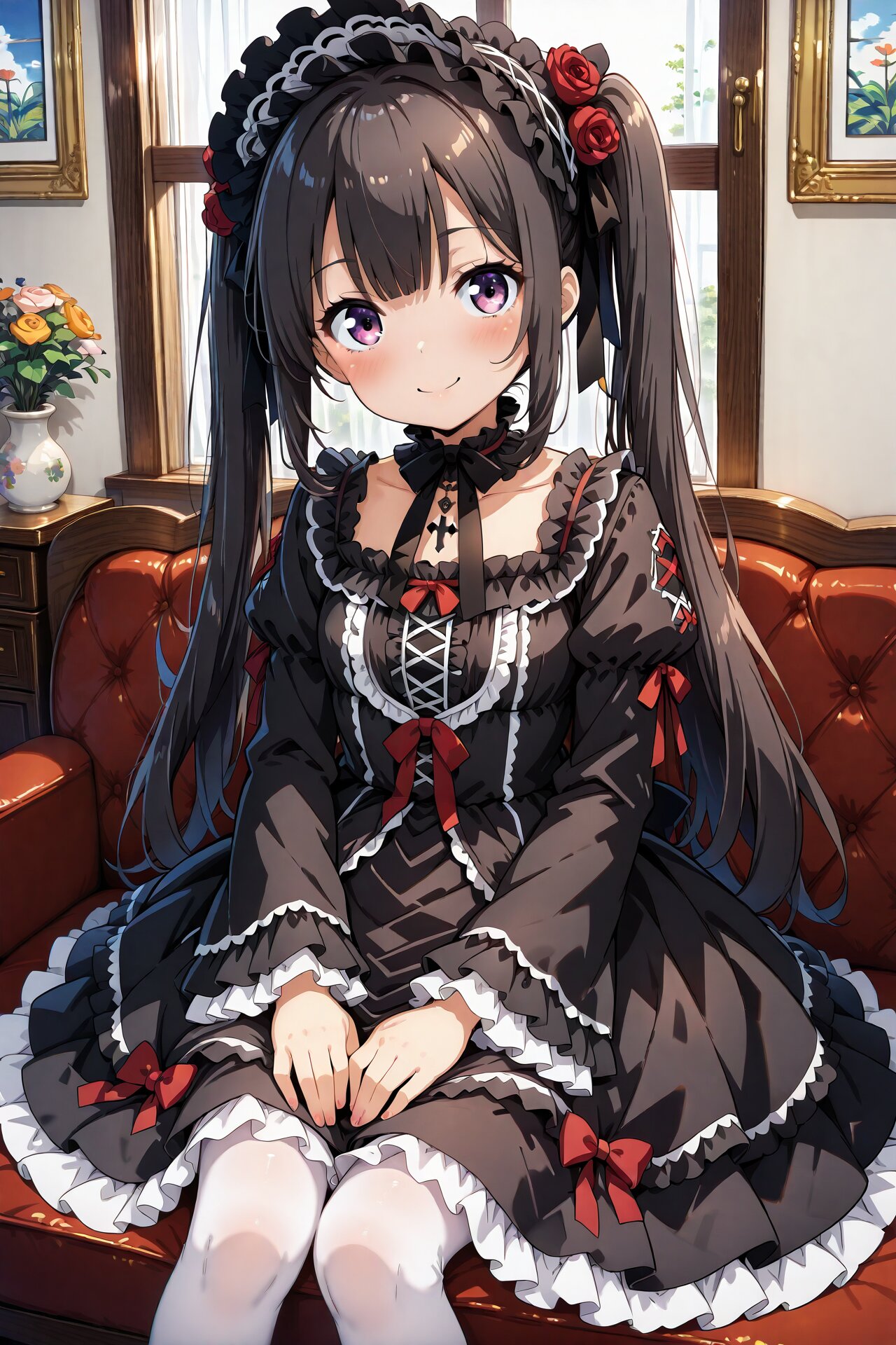 masterpiece, best_quality, Gothic Lolita, indoors, smile,