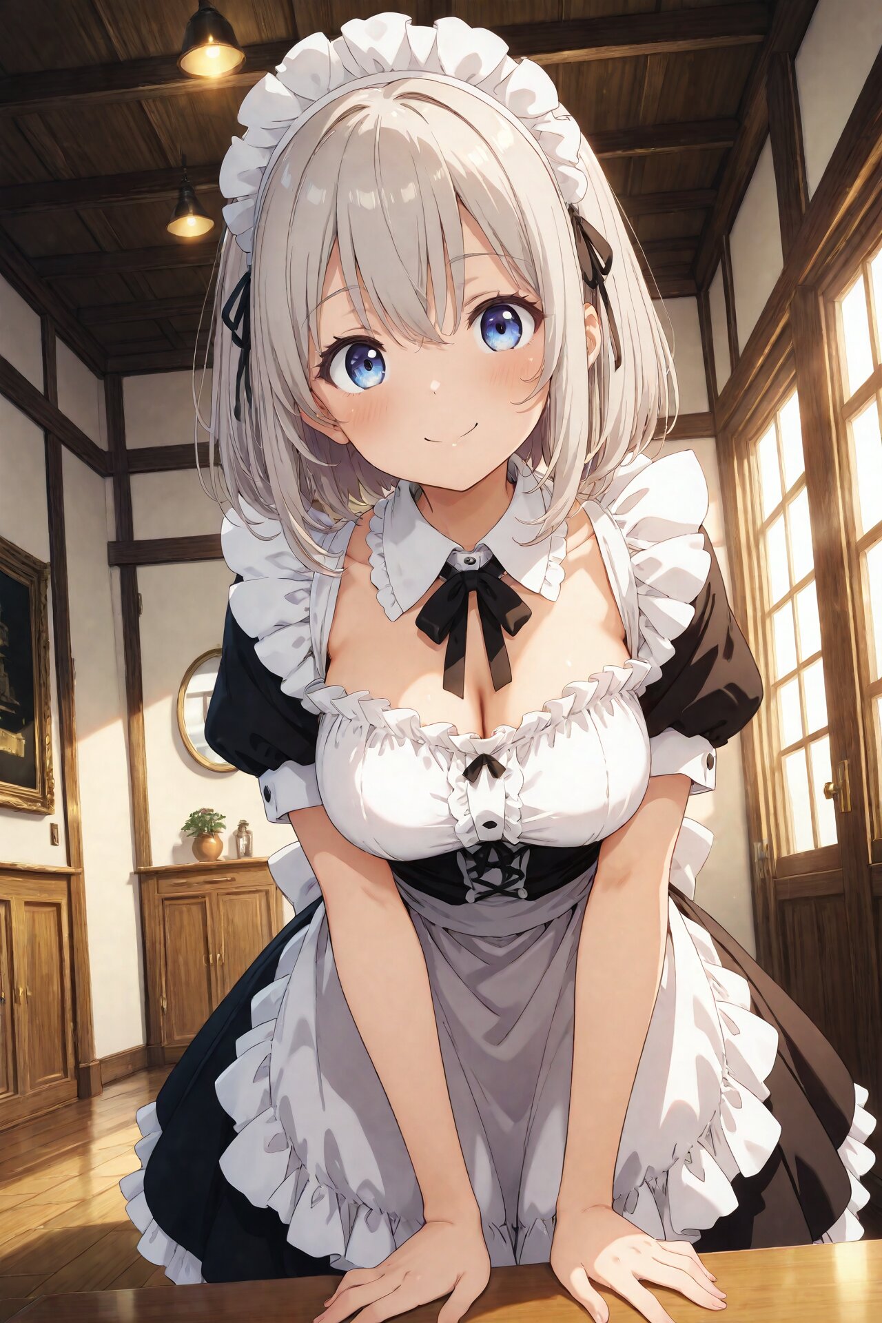 masterpiece, best_quality, maid clothes, indoors, smile,