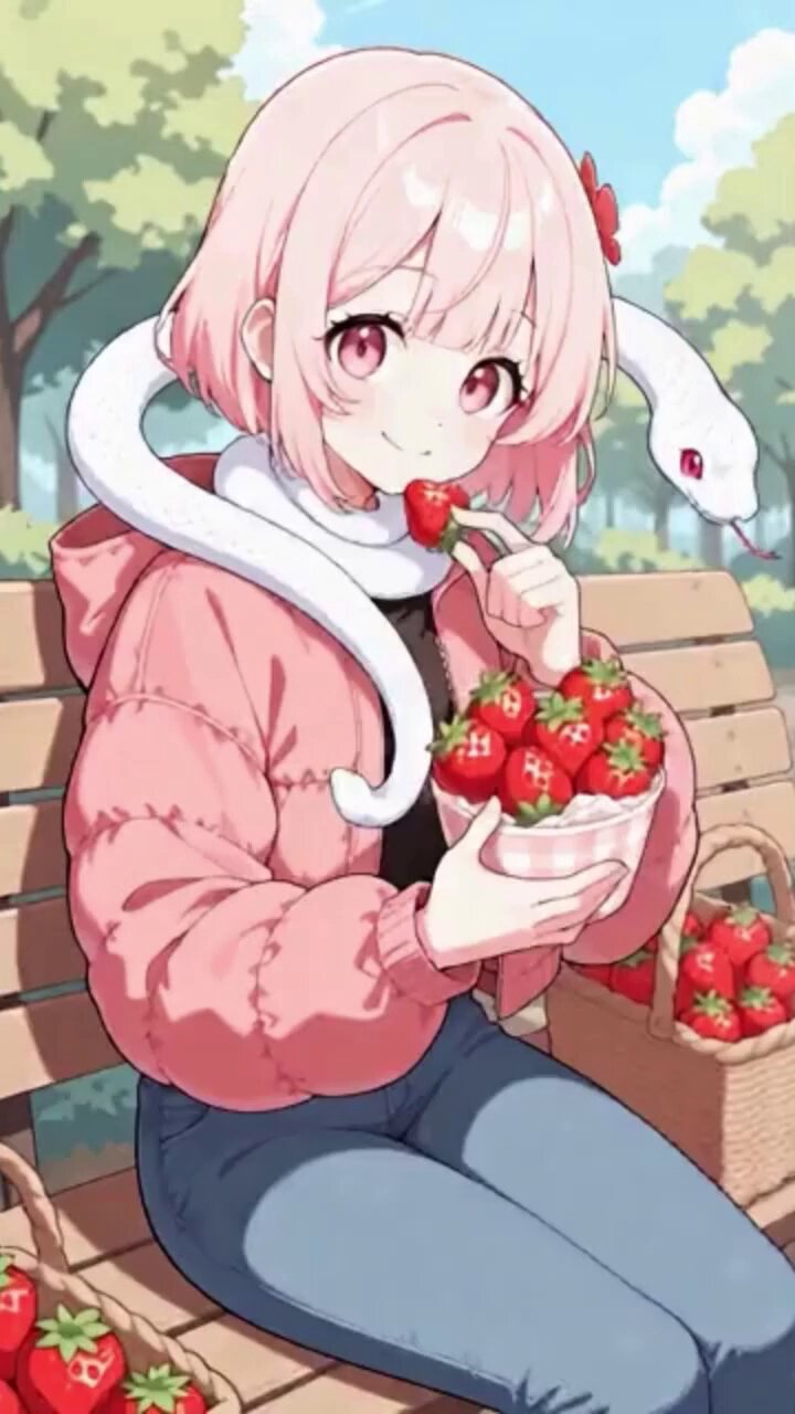 おいしそうにいちごを食べる動画ができたので🍓😆💖🍓🐍ワシモイチゴタベテル✨