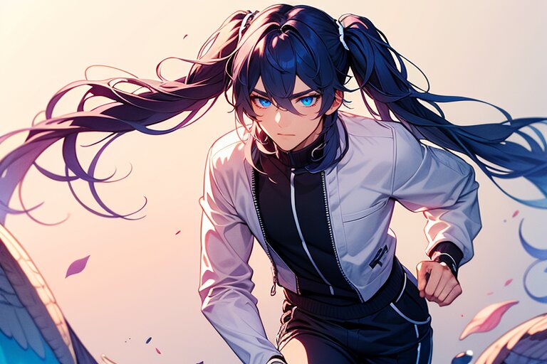 (male focus:1.8),absurdres,detailed and intricate, (best quality),(cowboy shot:1.8),solo,(1middle-aged man:1.5),(hurry:1.2),super beautiful,beautifu eyes,vibrant eye,beautiful and delicate eyes,extremely detailed, BREAK,sharp nose,facial muscle,long-shaped facel,male eyebrows, male eyes, eyes in highlight,beautiful detailed deep eyes,delicate facial features,extremely detailed,broad shoulders, BREAK,(blue eye), (tareme:1.5) BREAK,(purple hair),(long hair:1.8),(long hair:1.3),(twintails:1.8), BREAK,<lora:fashion:0.5>,Jacket,Pants, BREAK,shoot from above,dynamic angle, BREAK,(running:1.8)