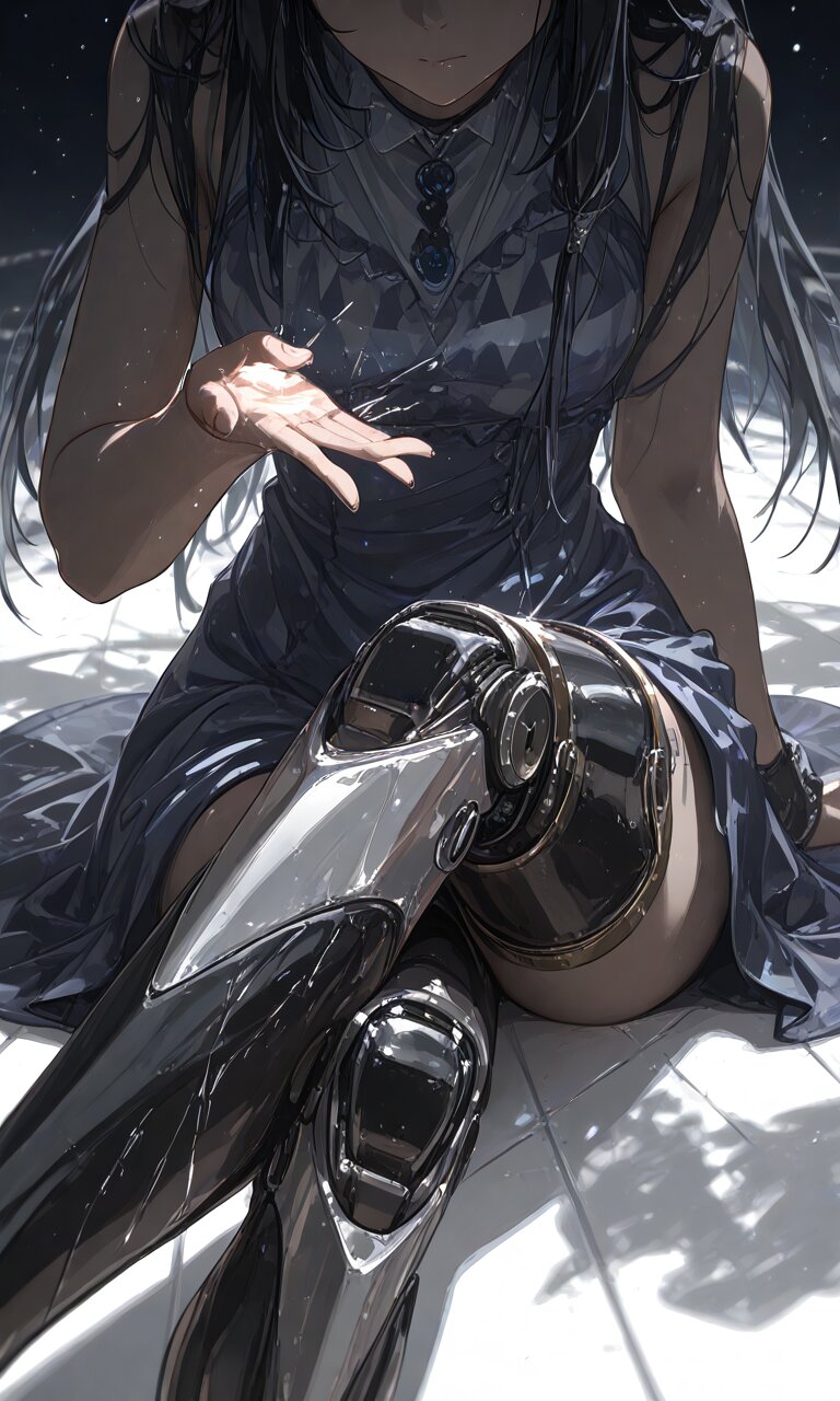 1 lady,sitting, sad face, (white background, patting legs), crossed legs, (cowboy shot), night,prosthetic leg, single prosthetic leg, blackprsocket, prosthetic leg, double prosthetic legs, blackprsocket, blackprsocket, skinprsocket, pinkprsocket, patternprsocket