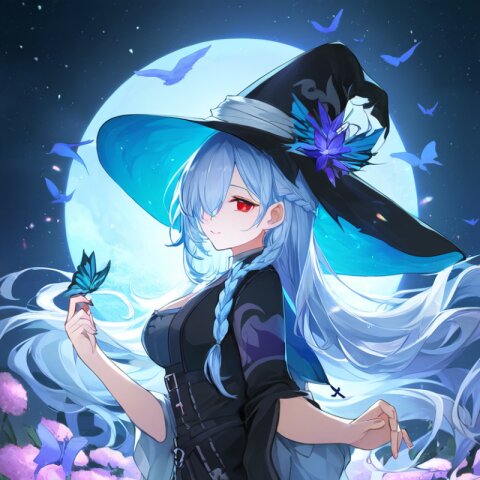 a witch with light blue hair
