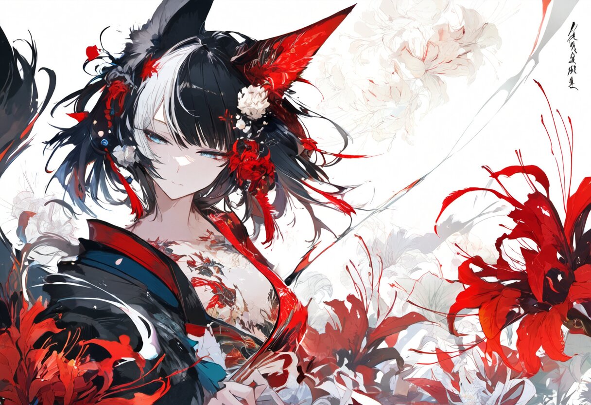 狐/艶 -59- はくの 2025/2/16使用したAI NovelAI 年齢制限 全年齢 いいね10 シェア #けもみみ #ケモミミ #狐耳 #狐娘 #彼岸花 #着物 #日本画風 #和服 #刺青 #墨絵 彼岸花 プロンプト なし コメント 送信 はくの 2023年4月より活動開始 1399投稿138フォロー132フォロワー いくら食べたい 色々やりたい人なので 色々やる人ですが 基本的に狐さんの人です 青が好き 扉絵や1枚絵が好きなので 動きのあるイラストは あまりやらないと思います 浮世絵や墨絵をプロンプトに多用するため 二次元イラストでの自分的美人画多め 予約投稿につき 反応は遅れることがあります いくら食べたい フォローする 他の作品 全てを見る 狐/妖 -224- 鋭きモノ 狐/妖 -223- 禍 狐/麗 -287- 帽子 狐/彩 -166- 虹 狐/麗 -286- 姉妹 狐/穏 -143- 淡 狐/妖 -222- 赤と青を混ぜると 狐/麗 -285- 青の瞳 狐/艶 -280- 青 狐/艶 -279- 枝 狐/麗 -284- 想い 狐/穏 -142- フリル 狐/彩 -165- 色彩の着物 狐/妖 -221- 赤 狐/艶 -278- 鎖骨美人 狐/艶 -277- 華に花 狐/艶 -276- 視線 狐/艶 -275- 和服美人 もっと見る