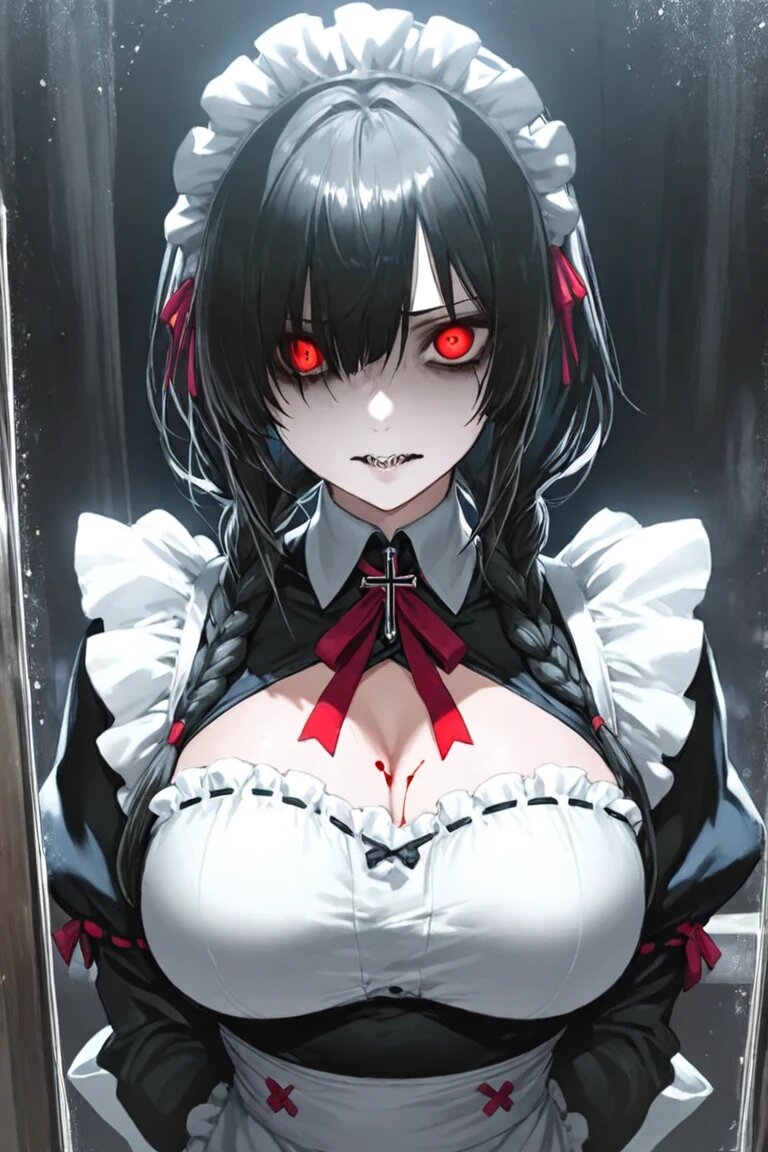 【high quality】【masterpiece】 【Precise and delicate drawing】 【 Dynamic Lighting 】 Black Haired Braided Maid , glass, sharp eyes, No emotion, A personality with a dark atmosphere has poor eyesight Cross-cut Ink painting