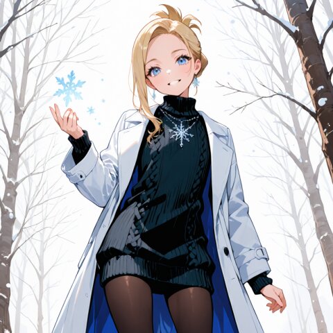 1girl with big round glasses, (perfect fingers), ribbed sweater, knitted hat, winter clothes, winter coat, breath, steam, multicolored hair, streaked hair, red hair, white hair, red eyes, hair between eyes, outdoors, snow field, powder snow, large snowflakes, fluffy snowflakes, snow and ice, town areas, day, sky, BREAK beautiful small face, big round eyes, beautiful detailed eyes, long eyelashes, double eyelids, parted lips, smile, kawaii, cute, flat chest, slender, perfect anatomy, dynamic angle, dynamic pose, BREAK (wide shot):1.5, (DOF), sharp focus on the girl, emphasizing depth, BREAK (masterpiece, aesthetic quality, 8K, ultra-detailed), perfect design, amazing quality, high quality, absurdres, highres, cinematic lighting, Maximum Detailed background, (perfect face), (masterpiece:1.2), (best quality:1.2), (very aesthetic:1.2), (absurdres:1.2), (detailed background), newest, add-detail, intricate details, safe, intricate colors, vibrant colors, score_9, score_8_up, score_7_up, score_6_up, source_anime, <lora:Worldly_XL:1>