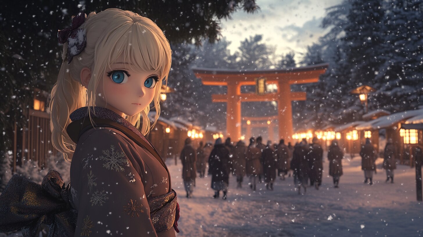 このイラストは「同調圧力からの解放」をテーマに描きました。人々が進む道とは違う方向を選んだ少女。彼女の背中を押すのは、寒く厳しい冬の風。それでも、一歩を踏み出すことで、新たな道が開けることを信じています。目の前の輝きに惑わされず、遠くにある本当に掴みたい光を目指して——不安と緊張を抱えながらも、少女は自分の意志で進んでいきます。