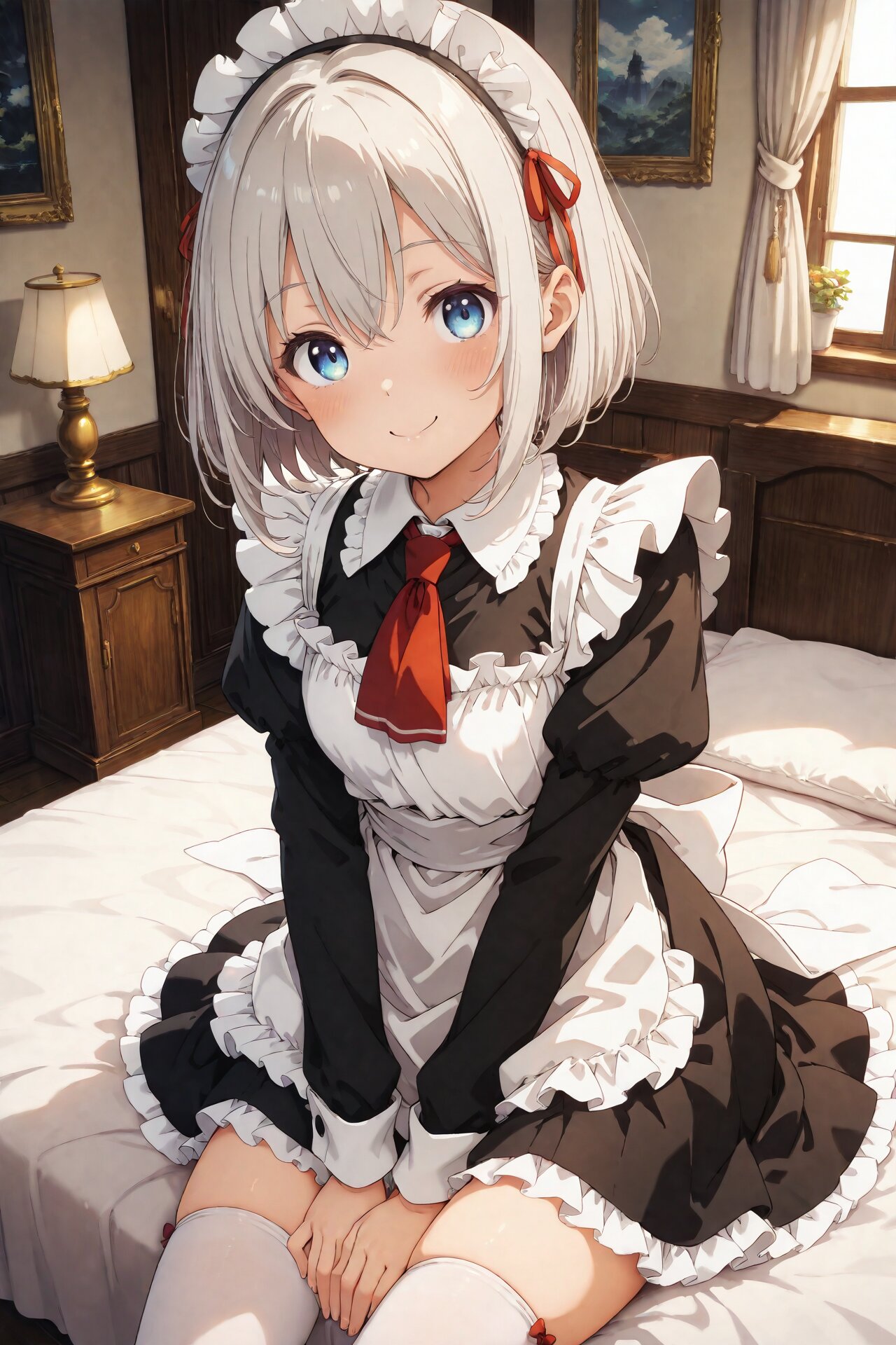 masterpiece, best_quality, maid clothes, indoors, smile,