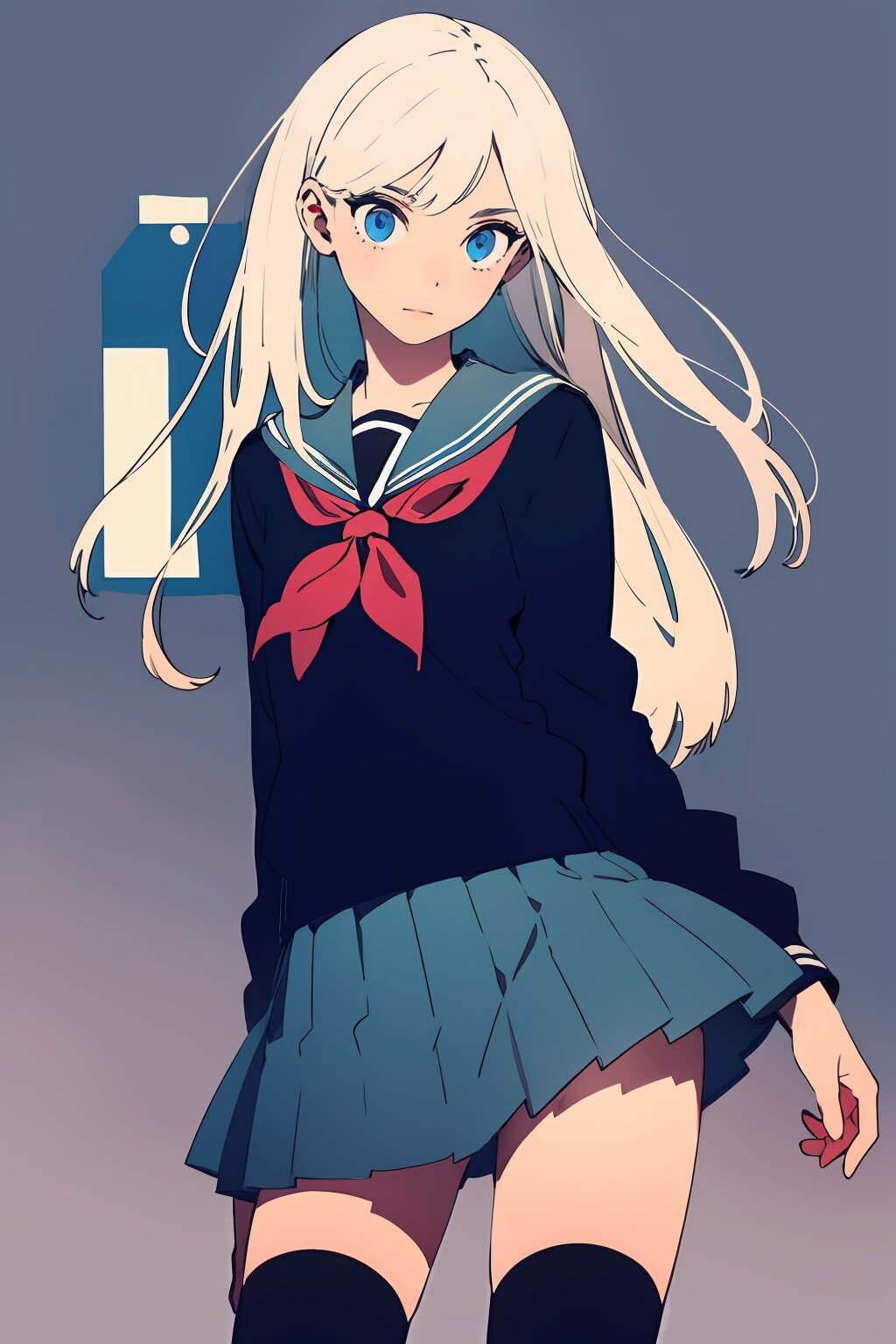 super fine illustration,absurdres,detailed and intricate, (best quality),(cowboy shot), BREAK,1girl,school uniform,mini Skirt,thighhighs, BREAK,white hair,long hair, BREAK,blue eyes, BREAK,school,dynamic Angle,