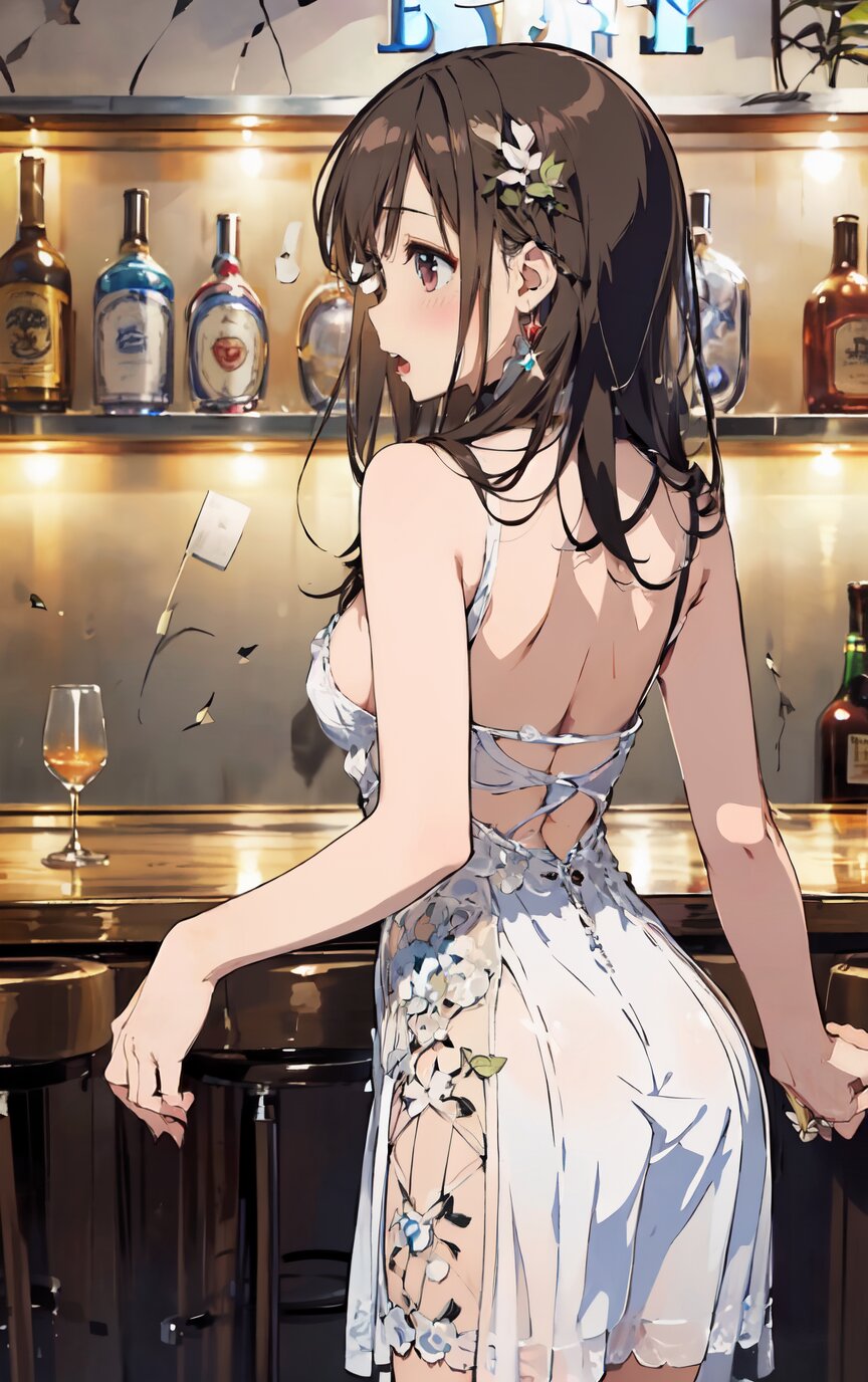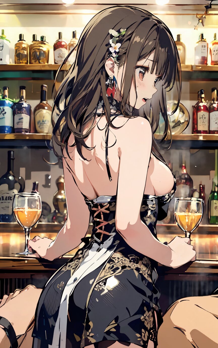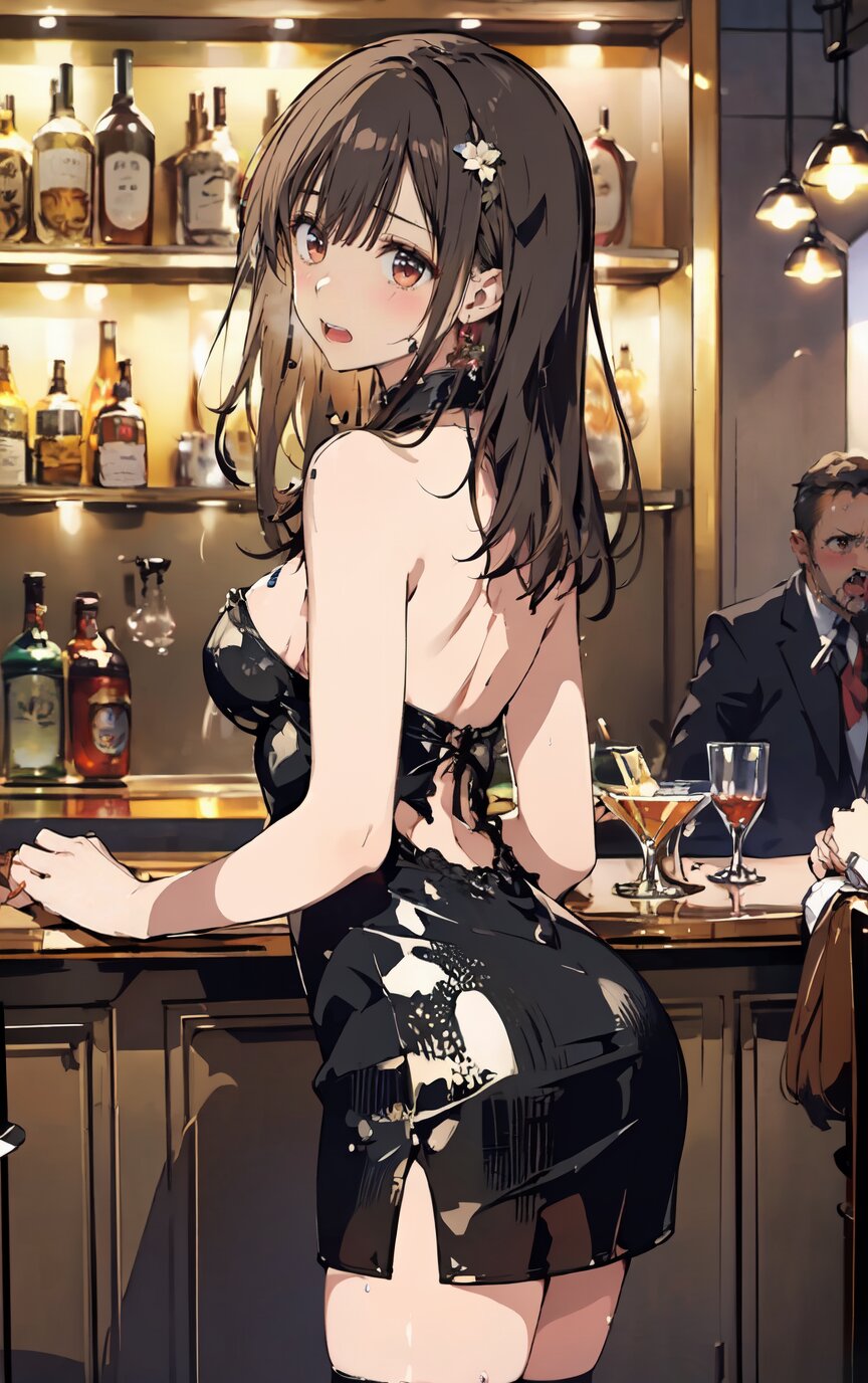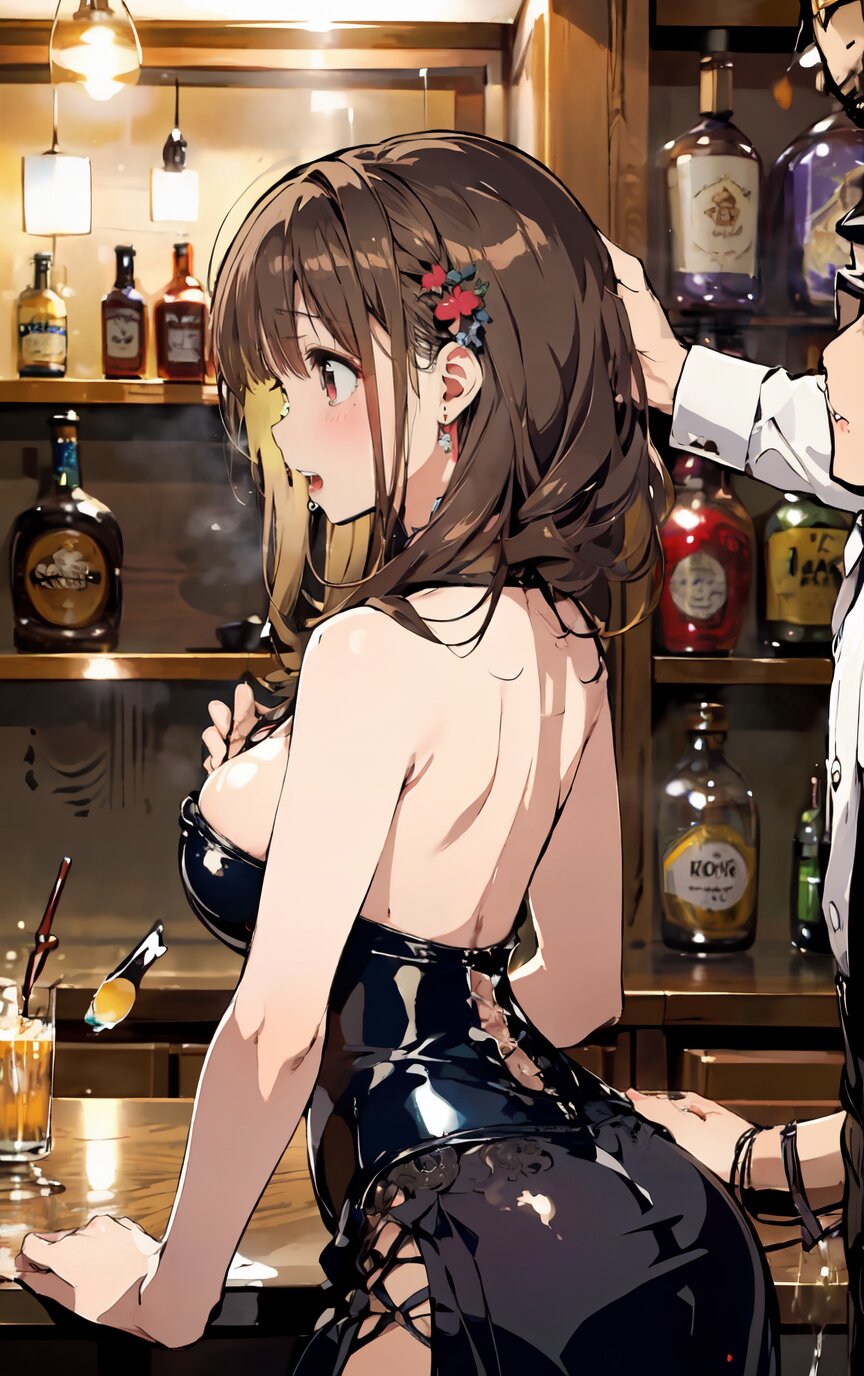 nsfw, (nude: 1.4), (8k, best quality, masterpiece:1.4), (realistic, photo-realistic:1.6), ultra-detailed, (sexy pose, random angle: 1.6), (1girl surrounded by men: 1.8), (1girl and men having sex, man fucking 1girl from behind, men rape 1girl: 1.8), doggystyle, 18 years old, straight long hair, (necklace, earrings: 1.2), (cowboy shot: 1.4), huge breast, perfect body, highly detailed, shiny skin, shiny hair, looking away, (party dress: 1.6), (inside of bar: 1.4), <lora:ymitsuki_v01:1>