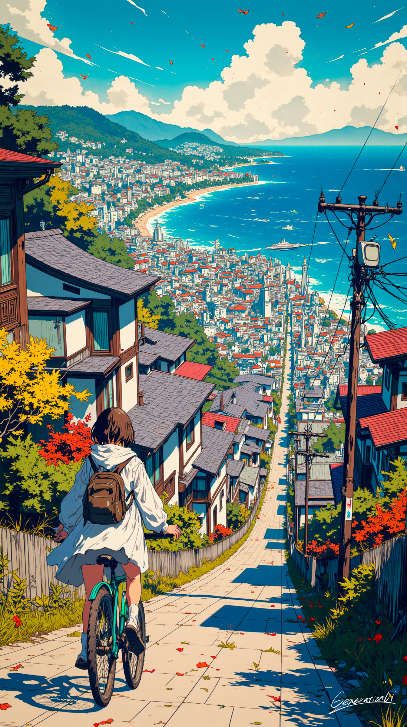 海までひとすじ/スマホ壁紙アーカイブ Generation UI 2025/4/11使用したAI その他 年齢制限 全年齢 いいね2 シェア #一本道 #海 #青空 #スマホ壁紙 #物語 #オリジナル 【海までひとすじ】海までひとすじ白い坂道が続いている。山の斜面に並ぶ瓦屋根の家々のあいだを、まっすぐに、静かに。まるで空から引かれた一本の線のように、揺らぐことも、迷うこともなく。電線の影はゆるやかに空へとほどけ、遠くの水平線では海と空とが境をなくして溶け合っている。静かな光が波を撫で、誰にも届かない言葉のようにきらめいていた。今日もまた、何かが始まる気配だけを残してやわらかな風が通り過ぎていく。 プロンプト なし コメント 送信 Generation UI 2023年1月より活動開始 305投稿0フォロー19フォロワー ✨心ときめくスマホ壁紙をAIイラストでお届けします✨ 眺めているだけで、ふと気持ちが動くようなものを目指しています💕 【受賞歴】 ・世界最大級の AI画像生成プラットフォーム Civitai 主催の国際コンテストで受賞 (グレートハロウィンコンテスト2025Gothic Glamour画像部門1位https://civitai.com/articles/22348) フォローする 他の作品 全てを見る 冬山へ続く灯籠の階段/スマホ壁紙アーカイブ 引っ越し荷物に海があった/スマホ壁紙アーカイブ 夕焼けに吸い込まれる線路/スマホ壁紙アーカイブ 真実はいつも雨音に紛れる/スマホ壁紙アーカイブ この時間が永遠ならいいのに/スマホ壁紙アーカイブ 本を開いたら、冒険が始まった/スマホ壁紙アーカイブ とても離陸できそうにない日/スマホ壁紙アーカイブ 雨の帰り道に滲むテールライト/スマホ壁紙アーカイブ 黄昏が私を呼んでいる/スマホ壁紙アーカイブ 光と雪が降る駅で/スマホ壁紙アーカイブ ストリート午後モード/スマホ壁紙アーカイブ 今日、少女は“伝説”と出会った/スマホ壁紙アーカイブ レンガ色の午後、風がやさしく通り抜ける街/スマホ壁紙アーカイブ 世界がオレンジに染まるとき/スマホ壁紙アーカイブ ボトルの中を走る小さな鉄道 / スマホ壁紙アーカイブ リビングに舞い降りた空のワンダーランド/スマホ壁紙アーカイブ 灰色の世界でひとつ息をする/スマホ壁紙アーカイブ 荷物より大きな夢を抱えて/スマホ壁紙アーカイブ もっと見る