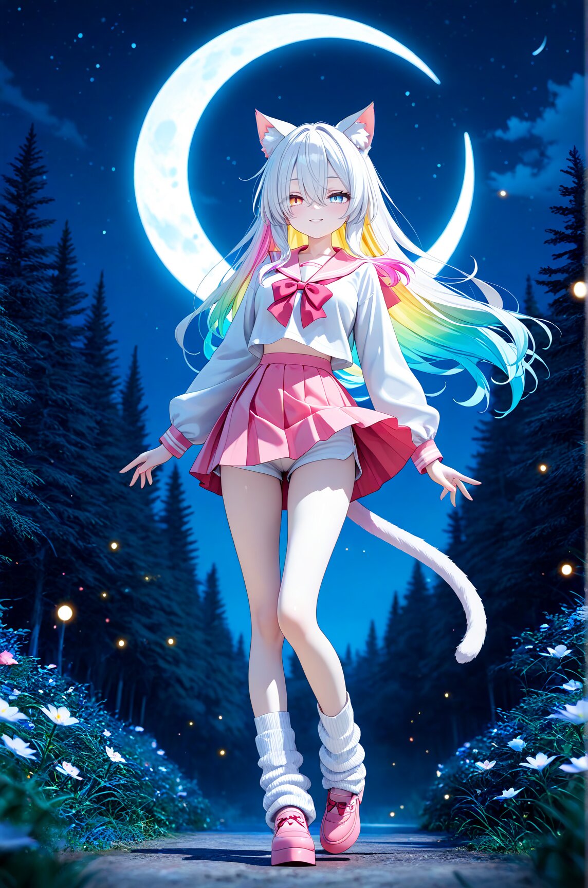 Anime illustration, CG art, 3D model, 3D rendering, 3D skin texture, high detail, depth of field, 1 person, cat ears, cat tail, hime cut, side ponytail, slanted eyes, sky blue eyes, white skin, gothic lolita, 8K, masterpiece, best quality, amazing quality, very aesthetic, (volumetric lighting), overexposed,