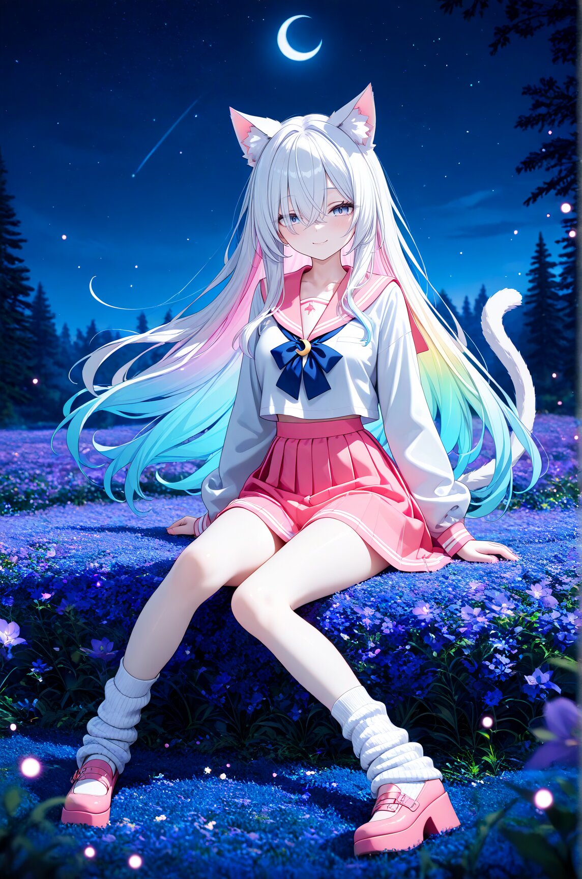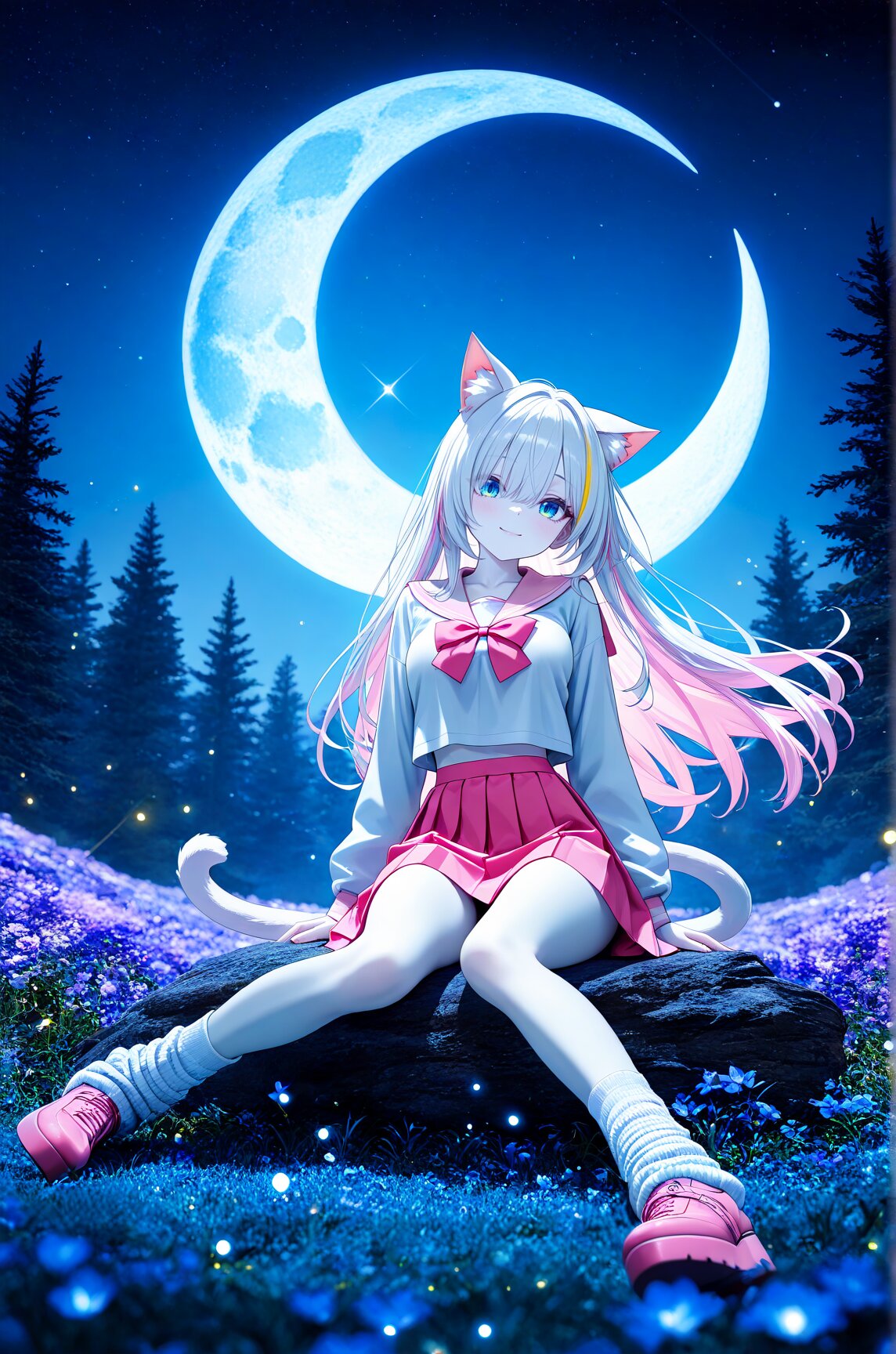 Anime illustration, CG art, 3D model, 3D rendering, 3D skin texture, high detail, depth of field, 1 person, cat ears, cat tail, hime cut, side ponytail, slanted eyes, sky blue eyes, white skin, gothic lolita, 8K, masterpiece, best quality, amazing quality, very aesthetic, (volumetric lighting), overexposed,