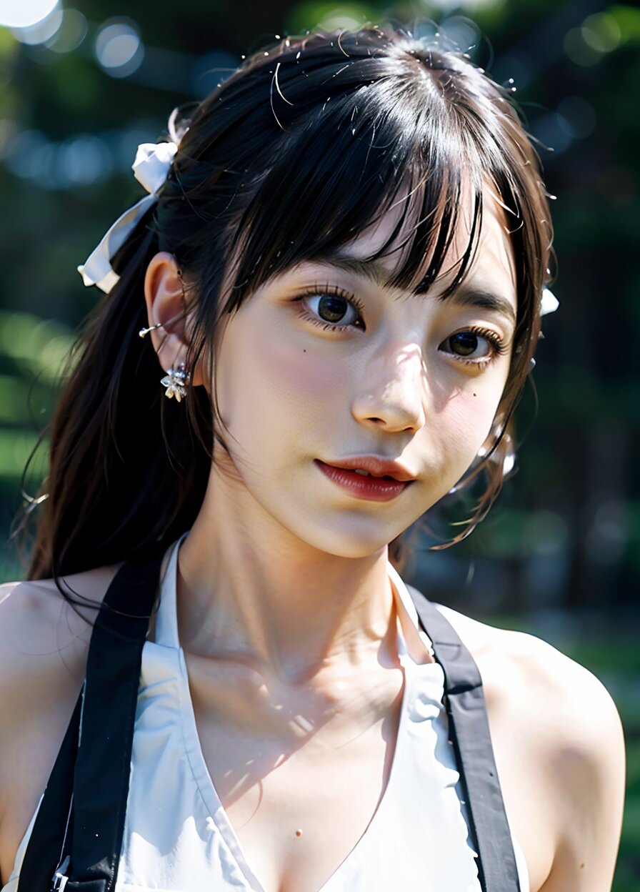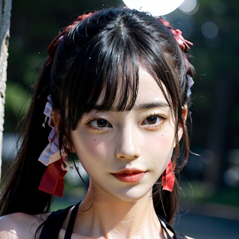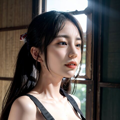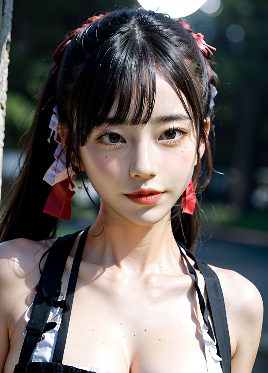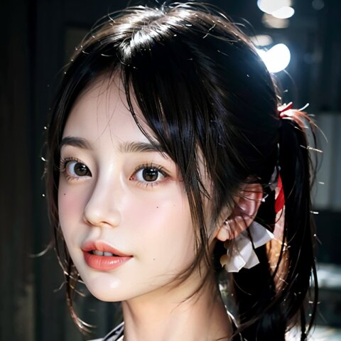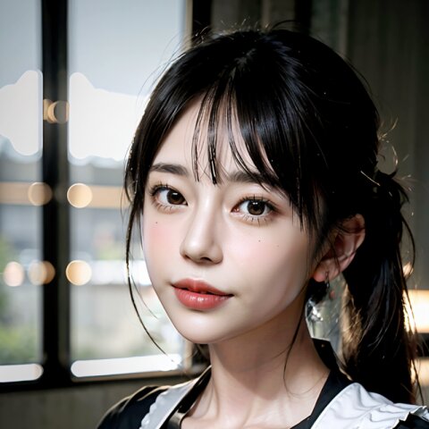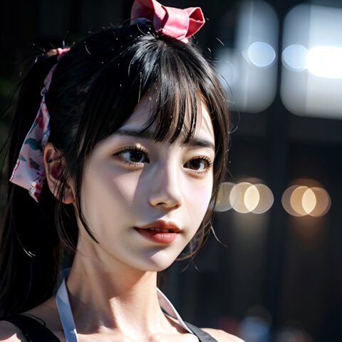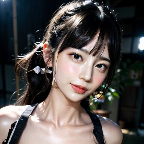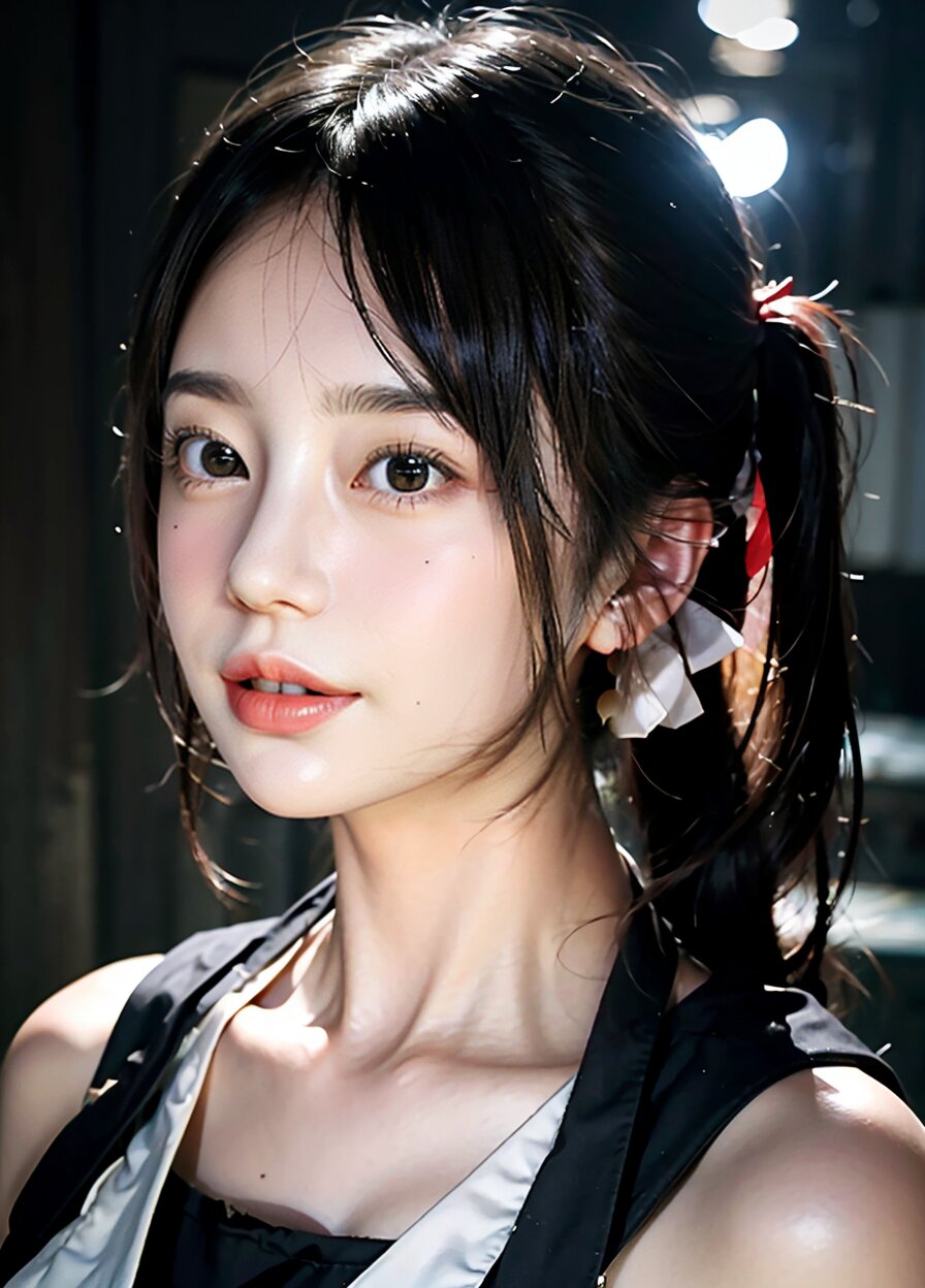 (((from front))), (8k, best quality, masterpiece:1.4), (realistic, photo-realistic:1.6), HDR, (incredibly absurdres:1.2), (vibrant color:1.2), ultra-detailed, 1girl, 16 years old, student, twintails, (japanese wafuku, apron: 1.6), mini skirt, (slender, huge breasts:1.6), beautiful detailed face, (upper body, closeup face: 1.6), perfect skin, detailed skin texture, (looking at viewer: 1.6), (standing: 1.4), (dark daylight: 1.6), in the old japanese living room, <lora:mi_v01:0.6>
