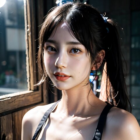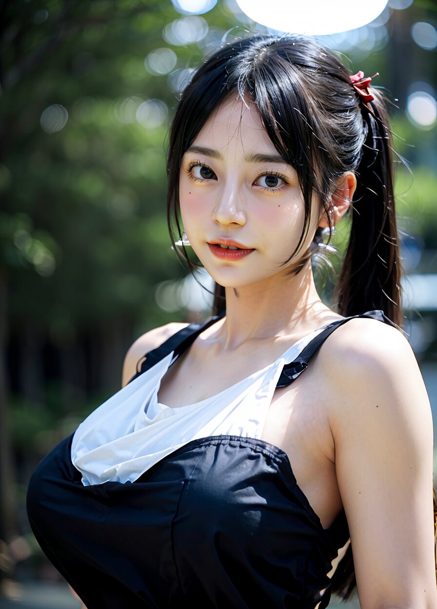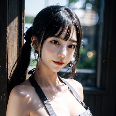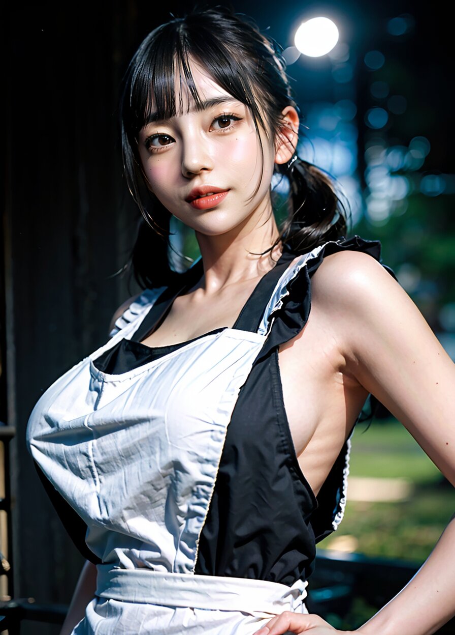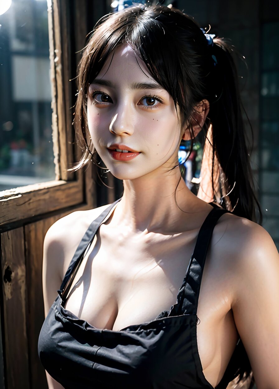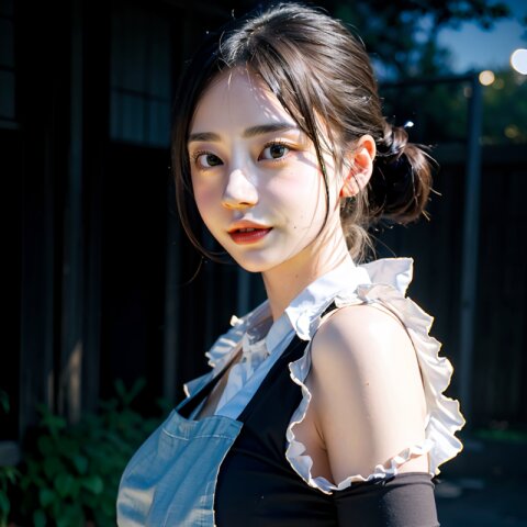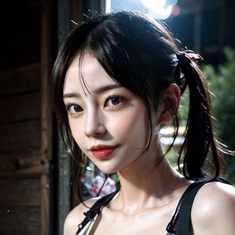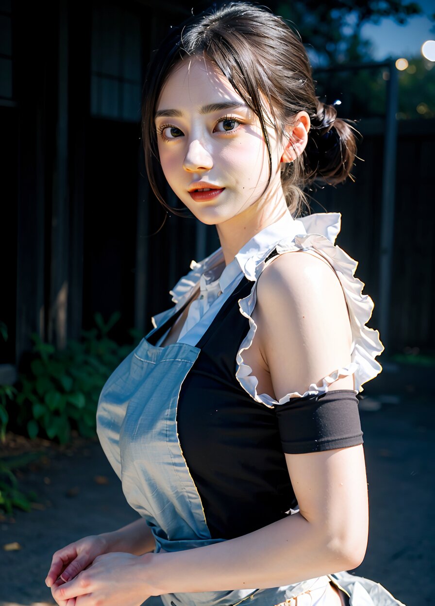 (((from front))), (8k, best quality, masterpiece:1.4), (realistic, photo-realistic:1.6), HDR, (incredibly absurdres:1.2), (vibrant color:1.2), ultra-detailed, 1girl, 16 years old, student, twintails, (japanese wafuku, apron: 1.6), mini skirt, (slender, huge breasts:1.6), beautiful detailed face, (upper body, closeup face: 1.6), perfect skin, detailed skin texture, (looking at viewer: 1.6), (standing: 1.4), (dark daylight: 1.6), in the old japanese living room, <lora:mi_v01:0.6>
