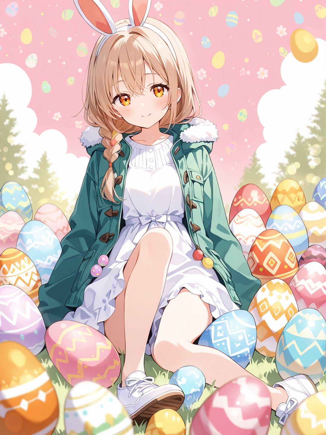 たくさんのイースターエッグに囲まれて可愛いですねぇ〜🥰🥰🥰