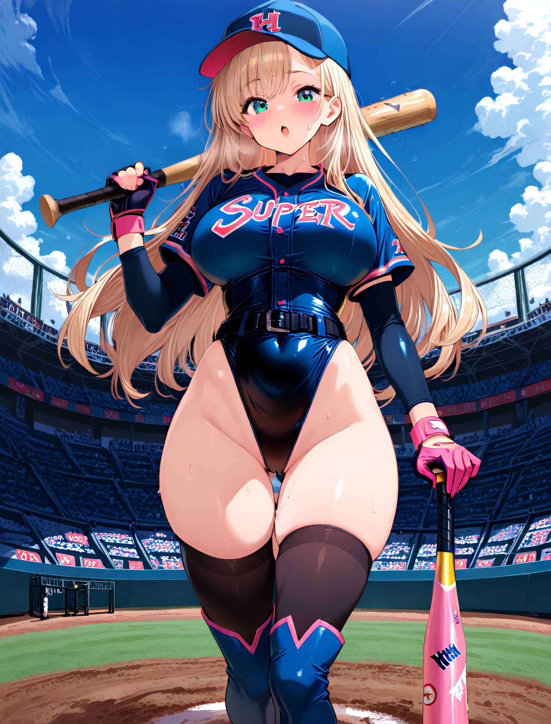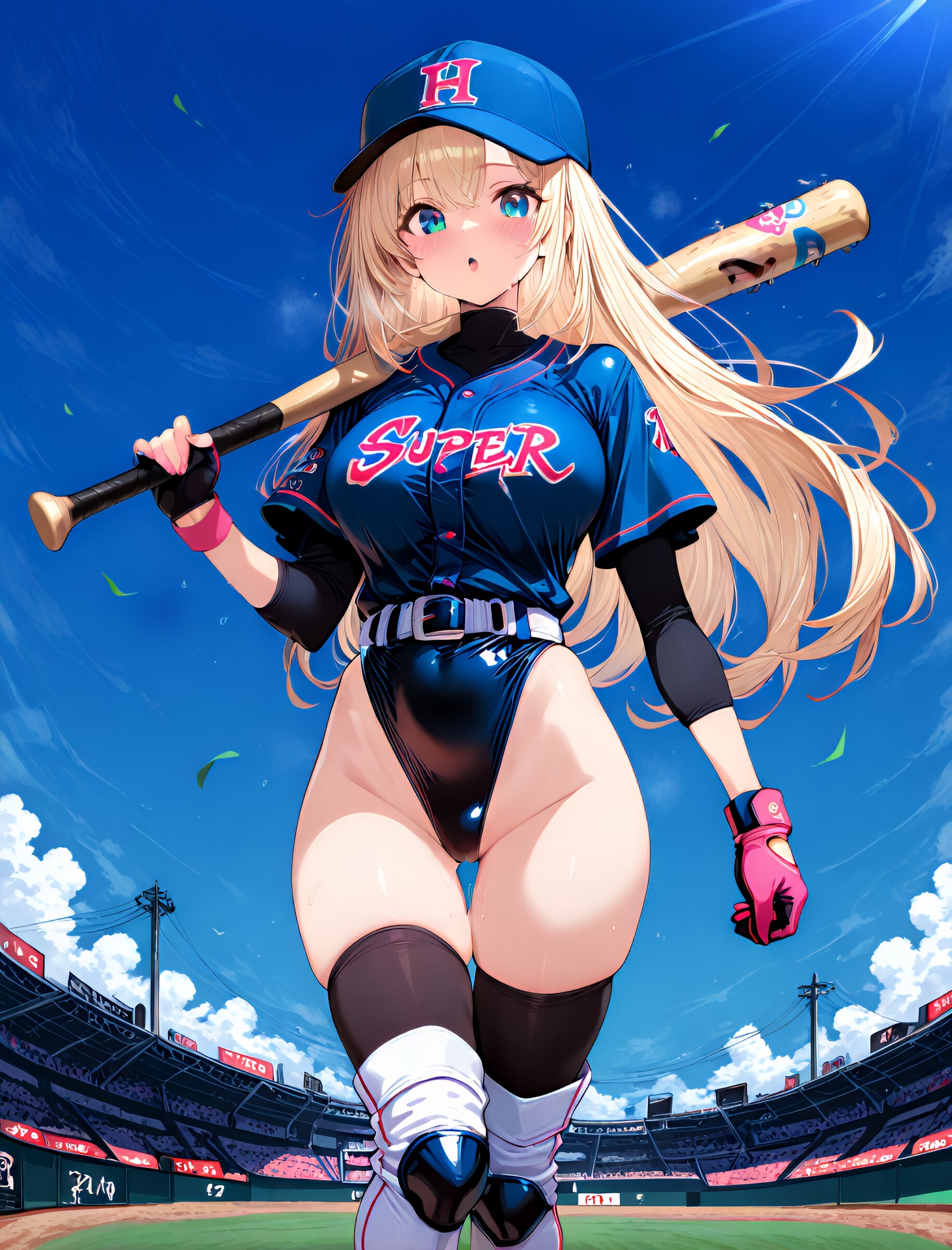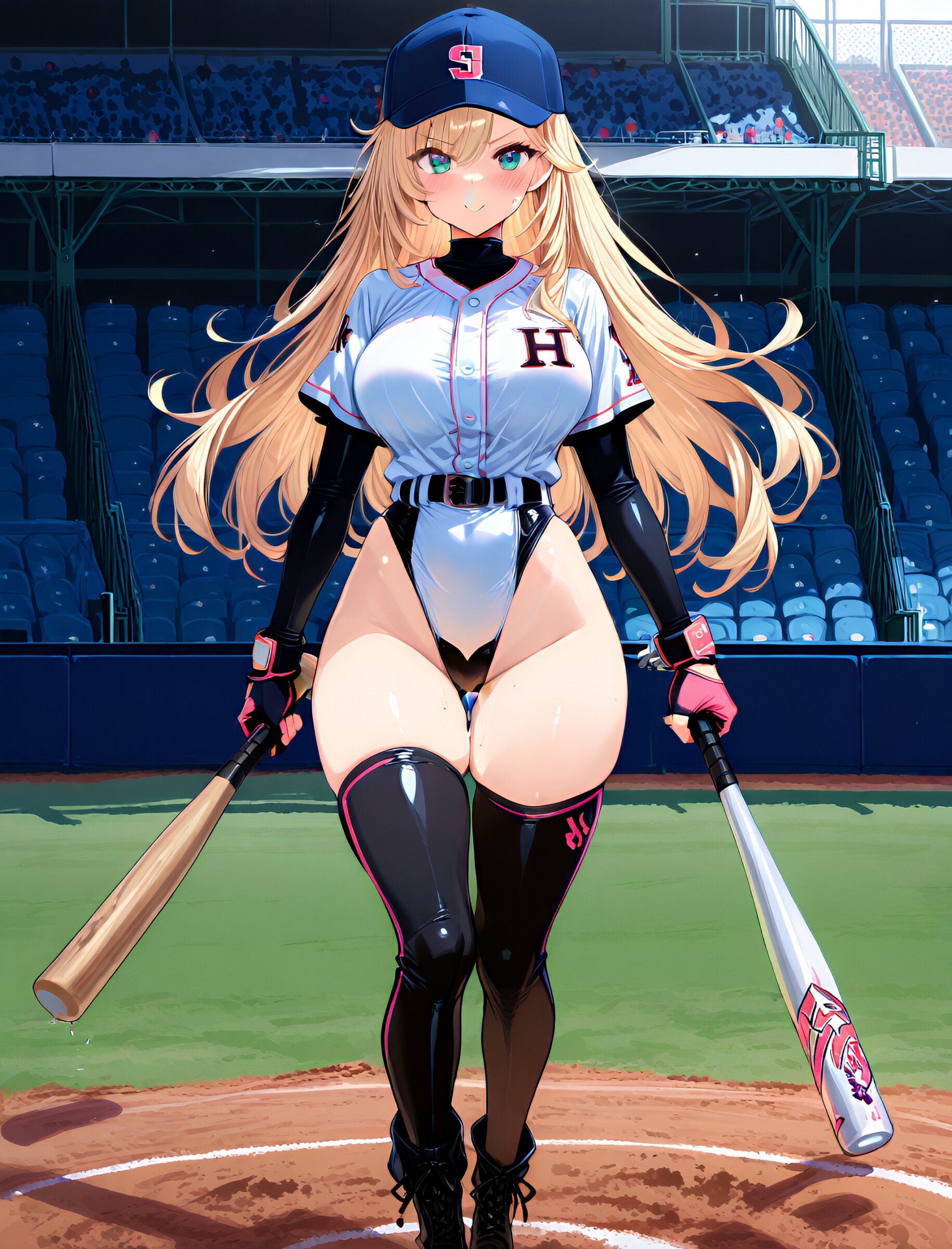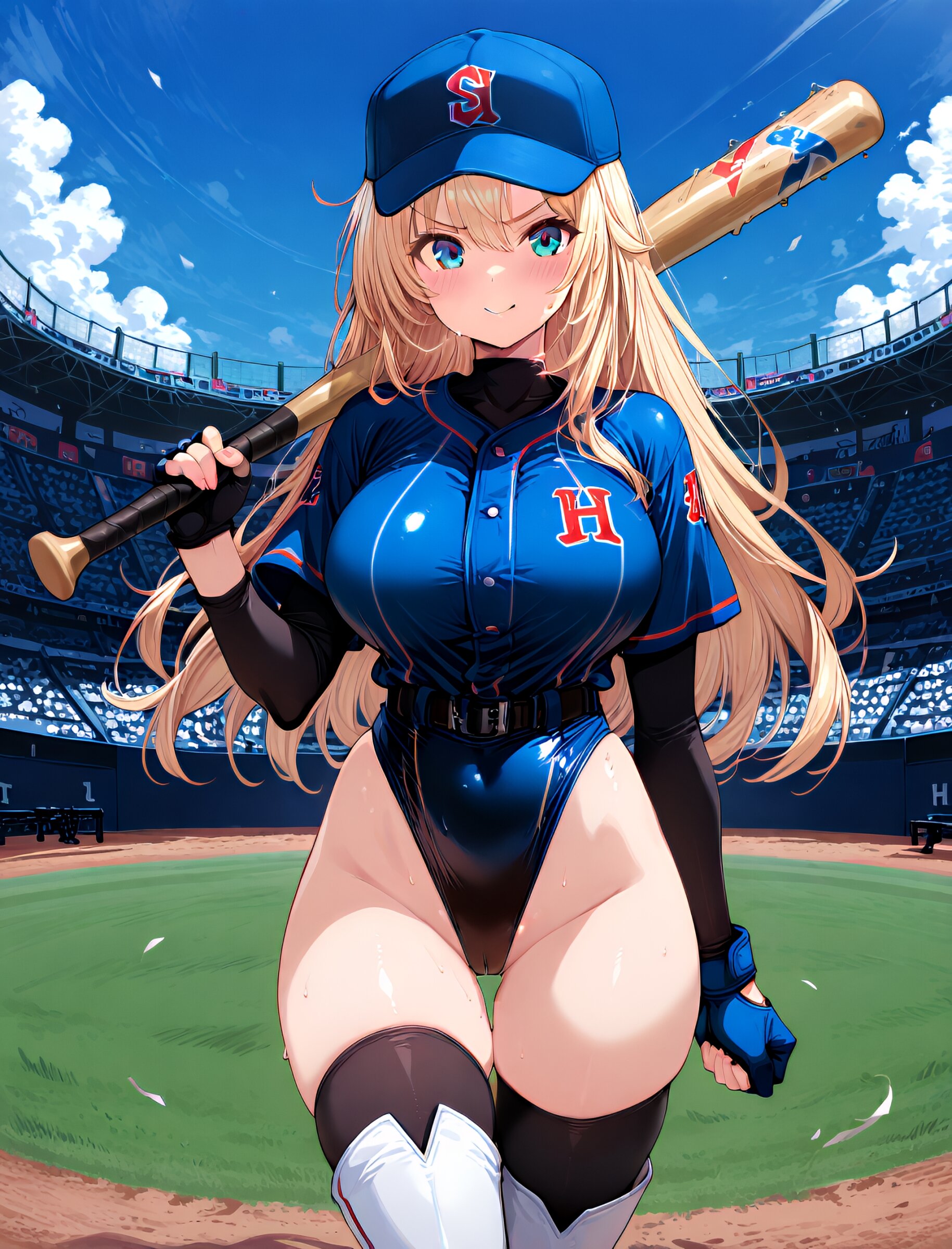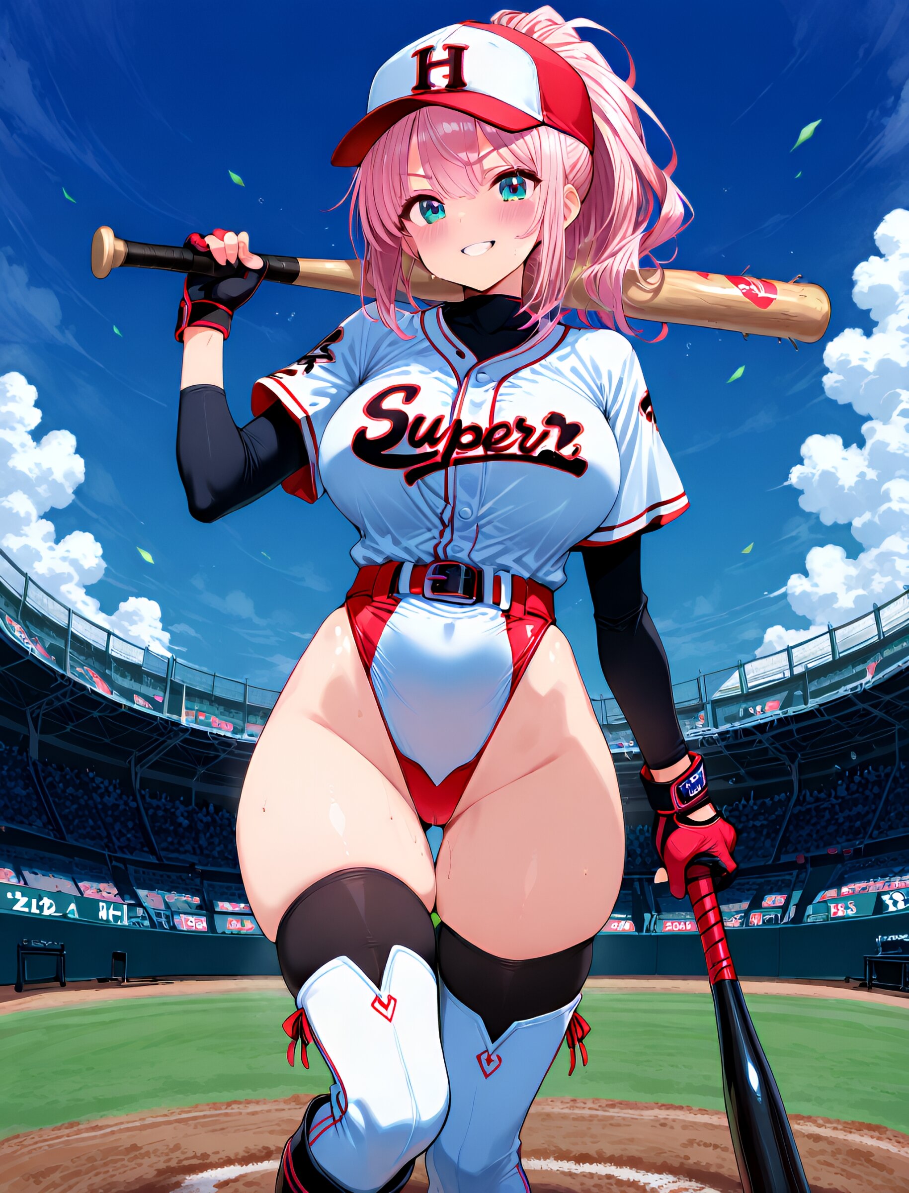 1girl, baseball uniform, baseball cap, baseball bat, glove, (super highleg leotard bottom:1.8), (thighhigh boots:1.5), (zettai ryouiki:1.5), (thigh gap:1.5), masterpiece, best quality, ultra-detailed, 8k resolution, very aesthetic, amazing quality <lora:noobai_ep11_stabilizer_v0.11_fp16:0.7> <lora:StS-Illustrious-Detail-Slider-v1.0:2.> <lora:sdxl-hairdetailer_02:2> <lora:xl_more_art-full_v1:1.4> <lora:spo_sdxl_10ep_4k-data_lora_webui:0.7>